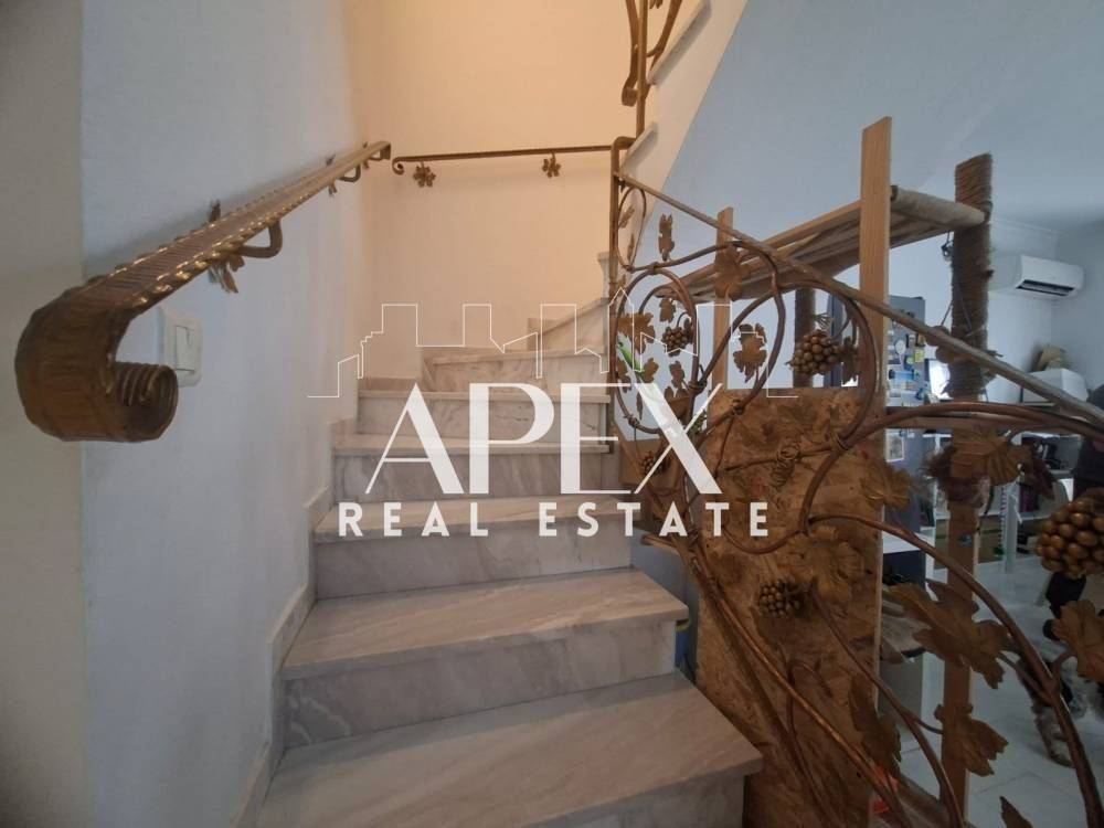 Luxuriously built maisonette of 140sq.m. for sale in the area of N.751 Panorama. It is developed on three levels, of which the first level can be made independent with a spacious bedroom, a large open plan kitchen with living room, a bathroom and a terrace. The second and third levels consist of three comfortable bedrooms, a bright kitchen, a large living - dining space, a bathroom and a WC. It has a private garden, double glazing windows, autonomous oil heating, air conditioning and a fireplace. It is located 200m. from supermarkets and public transportation.