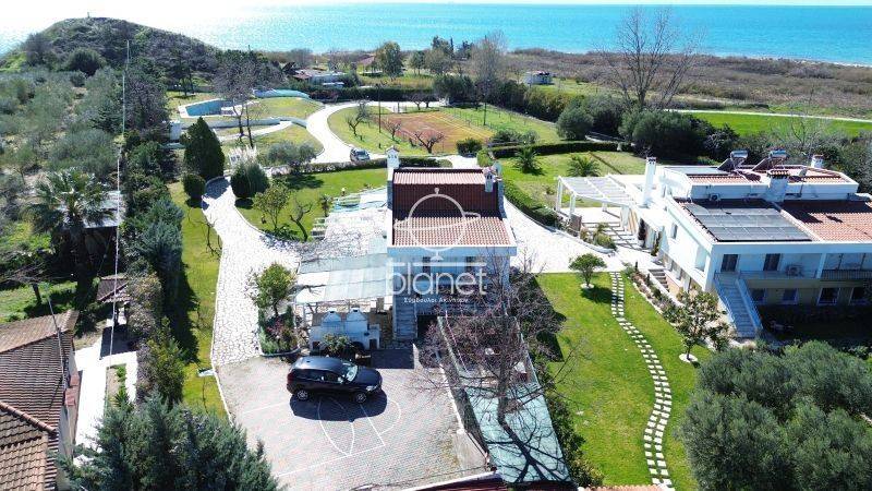Property Code: 16988 - House FOR SALE in Epanomi Center for € 475.000 . This 300.00 sq. m. furnished House is on the Ground floor and features 5 Bedrooms, 2 Livingrooms, 4 Kitchens, 4 bathrooms . The property also boasts Heating system: Individual - Petrol, marble and tile floor, view of the Sea, Window frames: Synthetic, parking, a storage unit sqm, garden, fireplace, swimming pool, A/C, alarm system, insect screens, double-glazed windows, BBQ, open space, internal staircase. The building was constructed in 1993 Plot area: 1500 s.q. . Building Energy Rating: B+ Distance from sea 50 meters, Distance from nearest village: 2500 meters, Distance from nearest airport: 20000 meters,