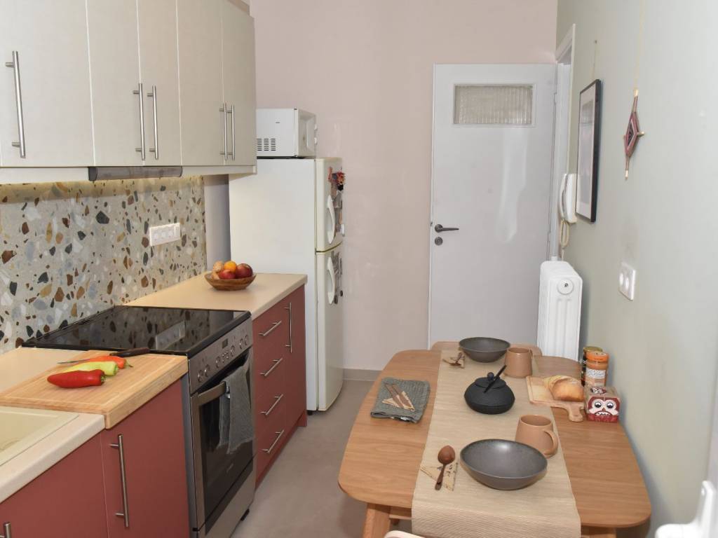 Located in the lively district of Patissia, just 50 meters from Agios Eleftherios ISAP Station, this apartment offers a rare combination of urban accessibility and modern living comfort. Immediate access to public transport and a fully serviced neighborhood make it highly practical for everyday life and particularly appealing as an investment. The 50 sqm apartment is set in a well-maintained building and was fully renovated in June 2024. Its through-layout ensures natural light and a sense of openness, while the smart design maximizes usable space with no wasted square meters. The living area is welcoming and versatile, suitable both for comfortable living and remote work. The bedroom is bright and quiet, while the kitchen and bathroom balance functionality with durable materials. Restored herringbone wooden floors add character, complemented by granite tiles that reinforce a clean, contemporary feel. Double-glazed aluminum frames, air conditioning, central heating, a security door and front and rear balconies complete the picture. Supermarkets, cafés, wellness centers, Jumbo stores and Pammakaristos Hospital are all within walking distance. An excellent opportunity for couples, students, or investors seeking strong demand and returns through short-term rentals such as Airbnb. Can be sold furnished