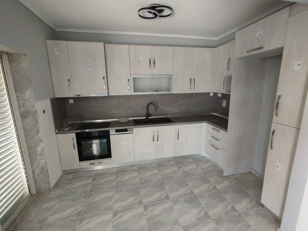 Comfortable 3rd floor apartment in excellent condition for rent. It is located in a five-story building in the Meteora area (Polichni), in a location that provides the convenience of easy access to the city center as well as to the local market, schools, services, etc. The apartment has a total area of 115 sq m. and has 3 bedrooms, 1 open-plan living room and kitchen and 1 WC which has a bathtub and a ventilation window. It also has a separate space for installing a washing machine. It is bright, with a large balcony on its facade. The windows it has are sliding aluminum while the floors are tiled. The apartment is heated by an individual natural gas boiler. The apartment is in excellent condition and new kitchen furniture, new bathroom furniture, new lighting fixtures with ceiling fans have been installed in it. Its equipment also includes a new dishwasher and a new electric stove. The apartment also has a closed garage of 12 sq m, which has a remote-controlled door.