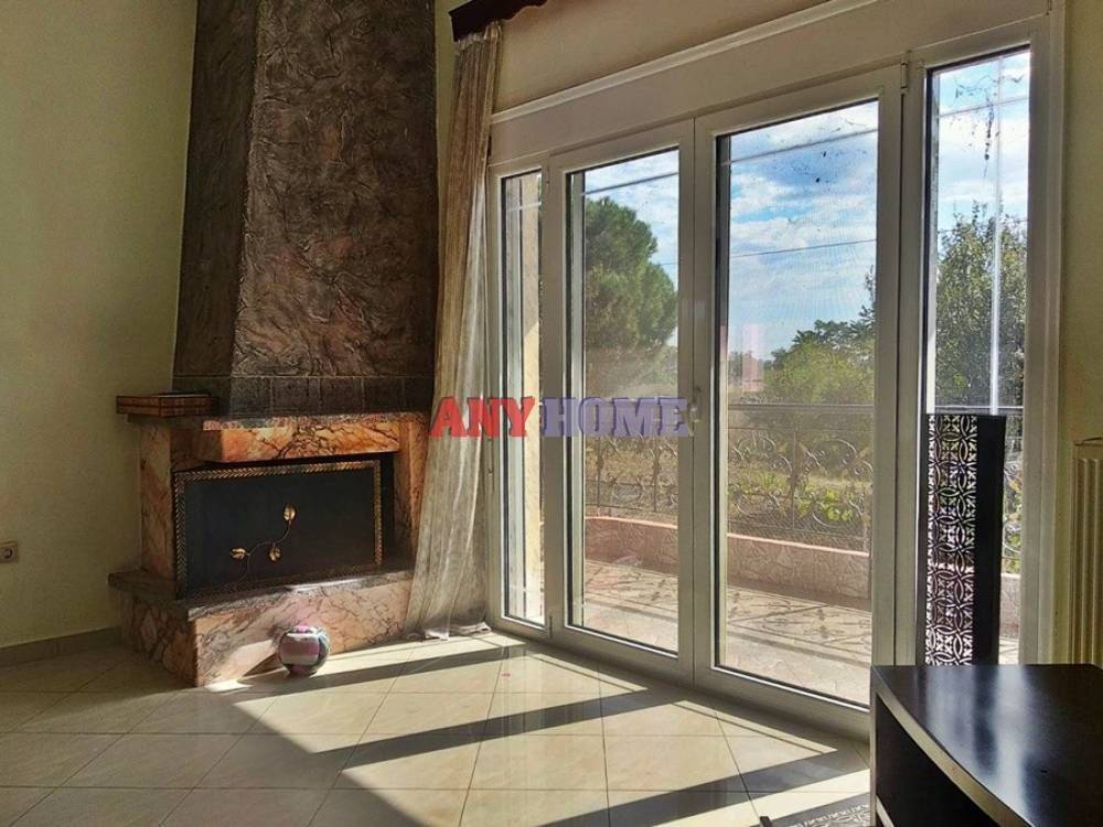 Sindos: Excellent house of 100sq.m. with individual oil heating. It consists of 3 comfortable bedrooms with wardrobes, 1 spacious lounge with fireplace, large bathroom, garden and 100sqm warehouse in the basement. It is built in 2005 and is 100 meters from the urban fabric along with 2 other houses on 700sqm plot. It has double glazed aluminum windows, security door, 1 outdoor (covered) parking space, tiled floors, fireplace, awnings, screens, solar water heater. Without monthly communal. Pets are allowed. For this particular property it is set for a brokerage fee of 1 rent + VAT