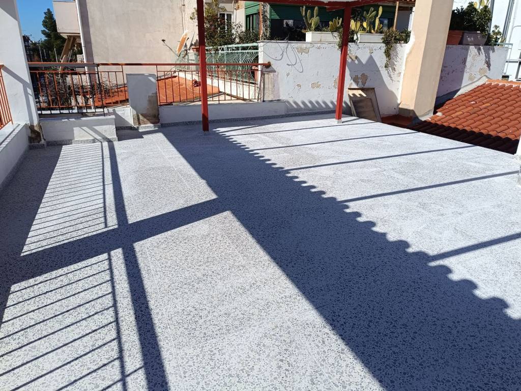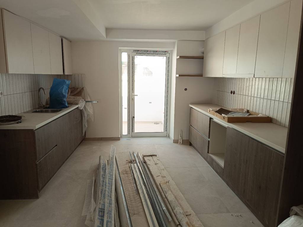 εξαιρετικό, πολυτελές διαμέρισμα που αποτελείται από μεγάλο σαλόνι σε ενιαίο χώρο με την κουζίνα, δύο άνετα υπνοδωμάτια και δύο μπάνια. Διαθέτει 4 κλιματιστικα (δύο στο σαλόνι και ένα σε κάθε υπνοδωμάτιο), μεγάλες βεράντες και προσφέρει αποκλειστική χρήση της ταράτσας στην οποία υπάρχει αποκλειστική πρόσβαση με εσωτερική σκάλα που βρίσκεται μέσα στο διαμέρισμα. Στην πέργκολα της ταράτσας θα τοποθετηθεί τέντα. Η κατασκευή είναι της δεκαετίας του 90 και ολοκληρώνεται σε δύο μήνες. Διαθέτει ατομικό λέβητα με φυσικό αέριο και θα τοποθετηθεί ηλιακός θερμοσίφωνας.