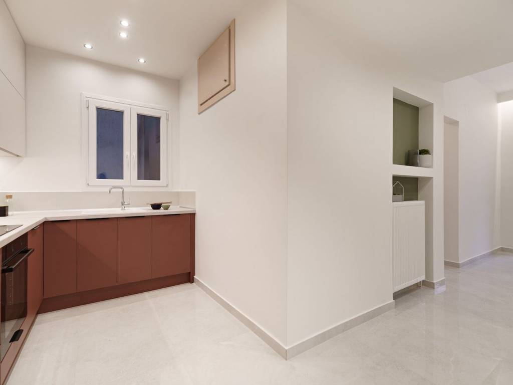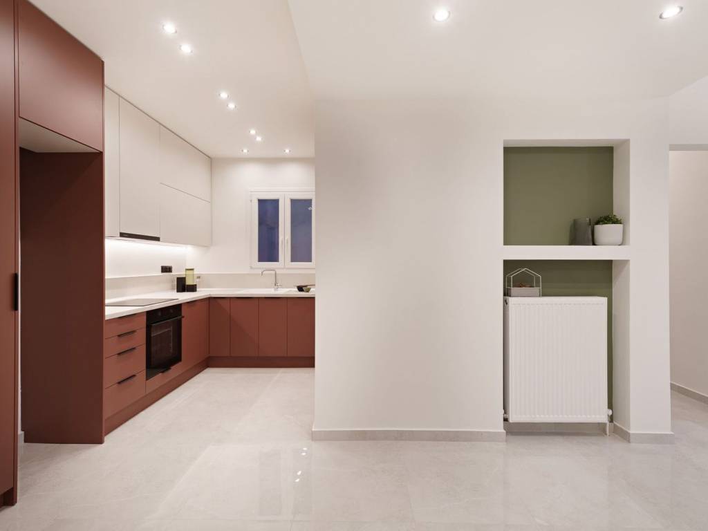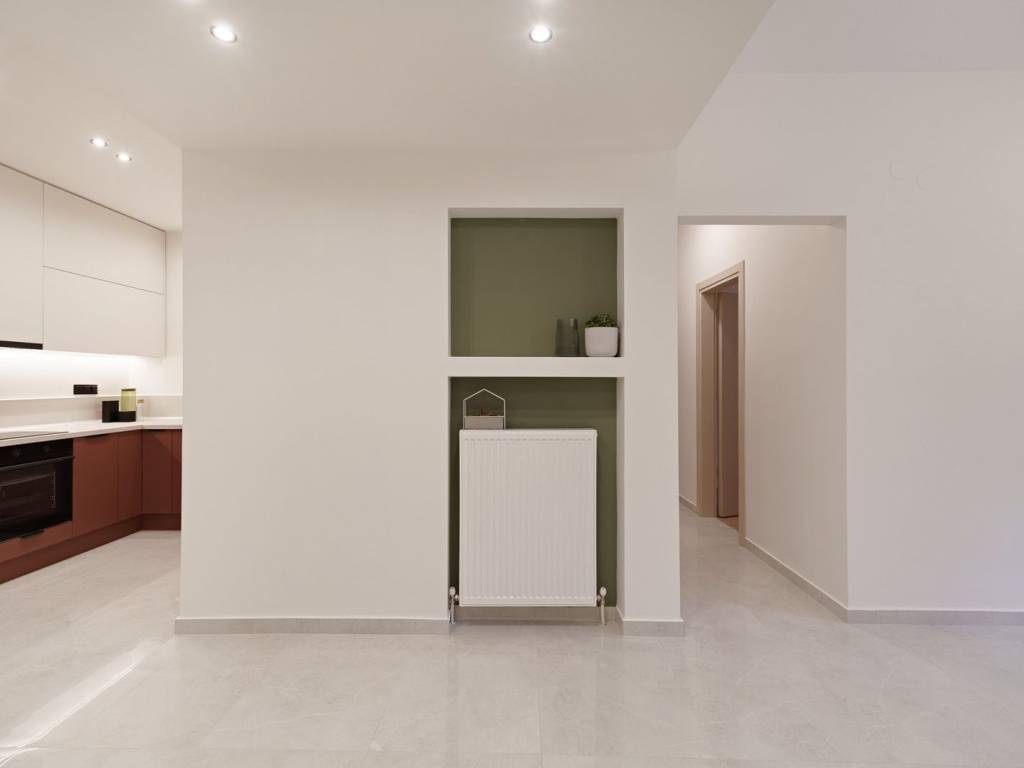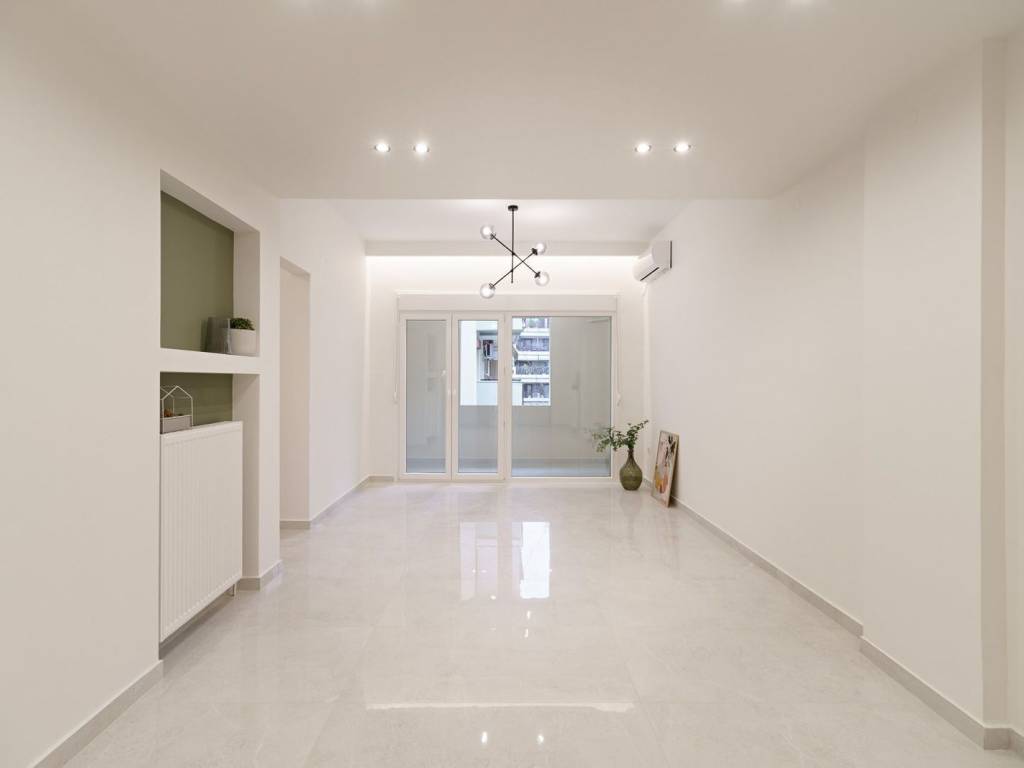 V. Olgas with Laskaratou For sale luxury apartment of 82 sq m on the 3rd floor with elevator in a well-kept family building. The property is fully renovated and equipped with individual natural gas, air conditioning and an oven with hobs. It consists of a living room, kitchen, bathroom and two bedrooms with wardrobe.