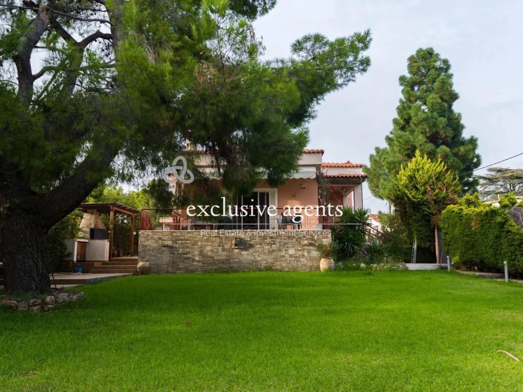 Detached house For sale, floor: Semi-basement, Elevated Ground Floor (2 Levels), in Nea Makri. The Detached house is 256 sq.m. and it is located on a plot of 1.218 sq.m.. It consists of: 5 bedrooms (3 Master), 4 bathrooms, 2 wc, 2 kitchens, 2 living rooms and it also has 6 parkings (6 Open). The property was built in 2000. Its heating is Autonomous with Oil, Air conditioning, Sound insulation, Thermal insulation, Radiator are also available, it has Alluminum frames with Double glazed windows, the energy certificate is: D and its floors are Tiles, Wooden. The property's status is: Very good condition, it is close to Sea. The Detached house is On Corner, With Facade, Bright, Airy and it also has the following unique features and advantages: Window Screens, Electric Appliances, Storage, Garden, Security door, Playroom, BBQ, Night stream, Automatic watering, Grass, Trees, Pets allowed, Quiet neighborhood, Service/Maid’s room. Price: €530.000. Exclusive Agents, contact phone: 2102200880, email: info@exclusiveagents.gr, website: www.exclusiveagents.gr