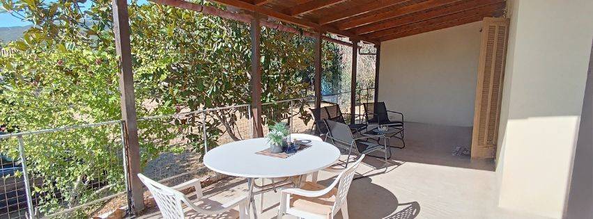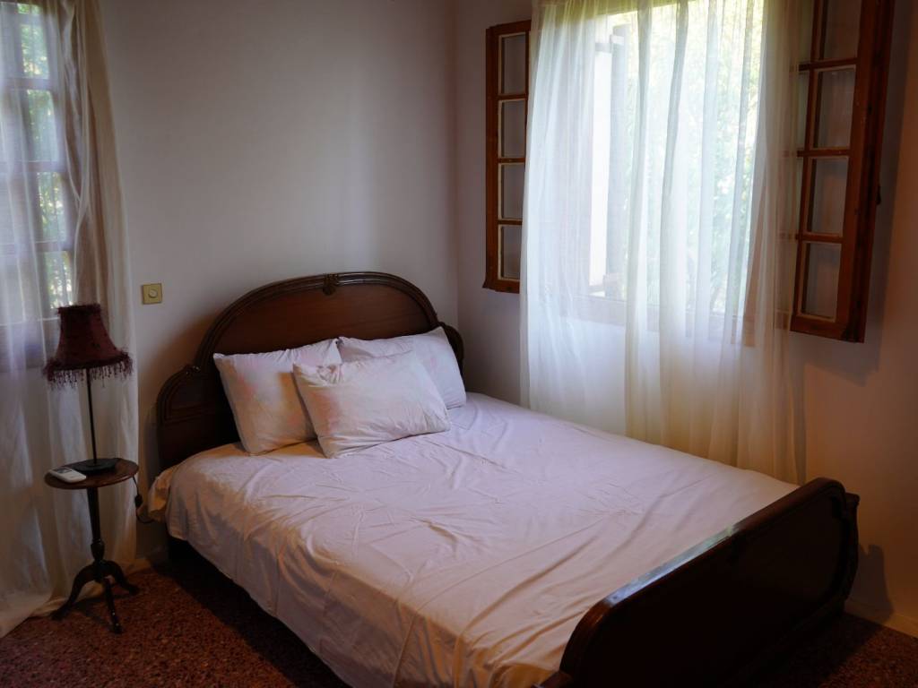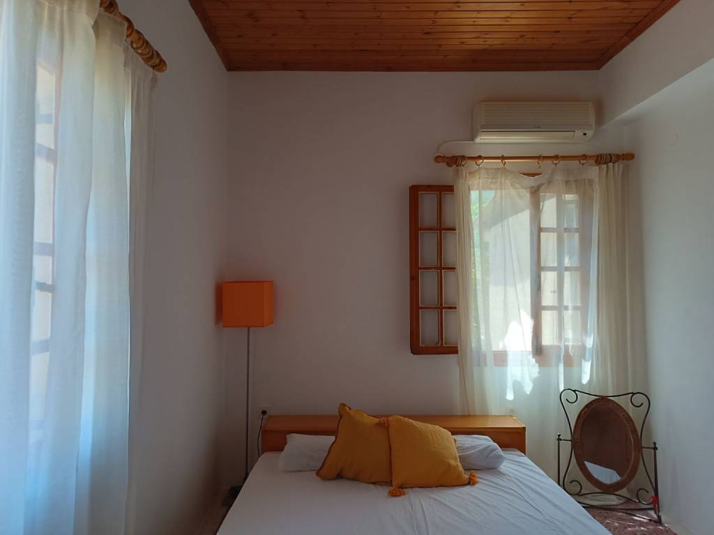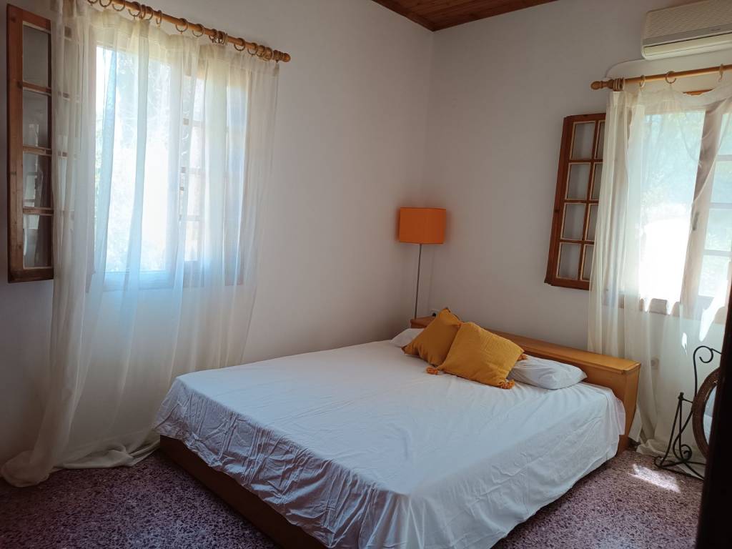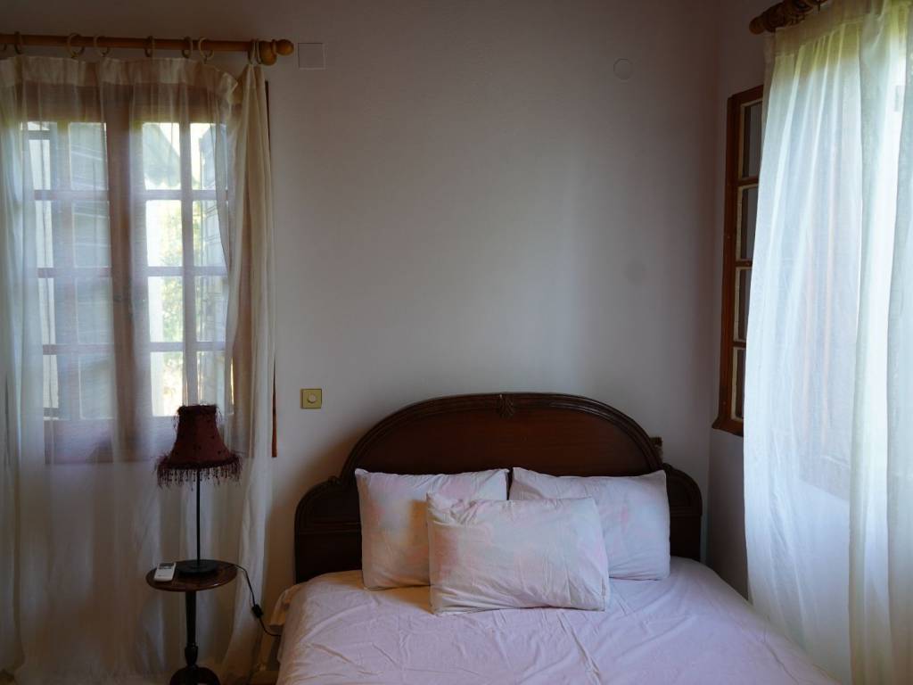 1) The detached house is developed over two levels, with two independent entrances – one from the ground floor and one from the lower level. Property Details • Elevated Detached House – 70 sq.m. (on a 397 sq.m. plot): Open-plan living room and kitchen, 2 bedrooms, 1 bathroom, Large corner veranda, 3 air-conditioning units, Solar water heater • Lower Level – Auxiliary Spaces 54 sq.m.: Three rooms suitable for storage, workshops, or guest accommodation External bathroom serving the auxiliary areas Additional separate storage room next to it Additional Plot for Sale