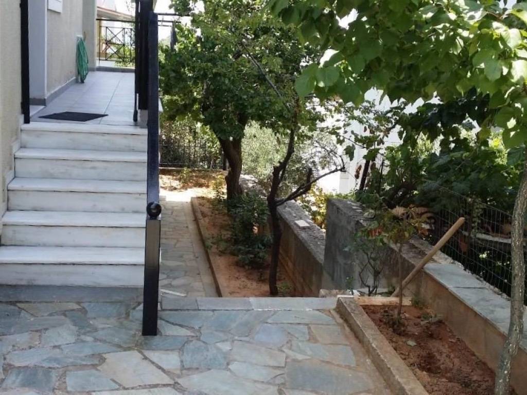 In a quiet residential area of Nea Penteli, within a three-story building, zaloni's real estate offers for sale a bright and airy 222 sq.m. maisonette, developed on two levels, on a 402 sq.m. plot. The raised ground floor (140 sq.m.) includes 3 spacious bedrooms, a bathroom, a living room with a fireplace, a separate kitchen, and a WC. The semi-basement (82 sq.m.) has its own entrance and can function completely independently, with a kitchen, living room, and one bedroom. Due to the sloping terrain, the basement functions as a ground floor, with plenty of natural light and direct access to the garden. There is infrastructure for an internal staircase, allowing for the complete integration of the two levels. The residence was built in 1987 and renovated in 2001. It has energy class C, autonomous oil heating with its own burner and tank, solar water heater, aluminum window frames with double glazing, and marble & wood flooring in excellent condition. It provides additional storage space with a storage room inside the residence and a loft, while there is the possibility of creating a parking space in the courtyard. The maisonette has been used very little and is in excellent condition, ready for immediate occupancy without the need for any work or renovations. Ideal choice for a family or for use as two independent residences.