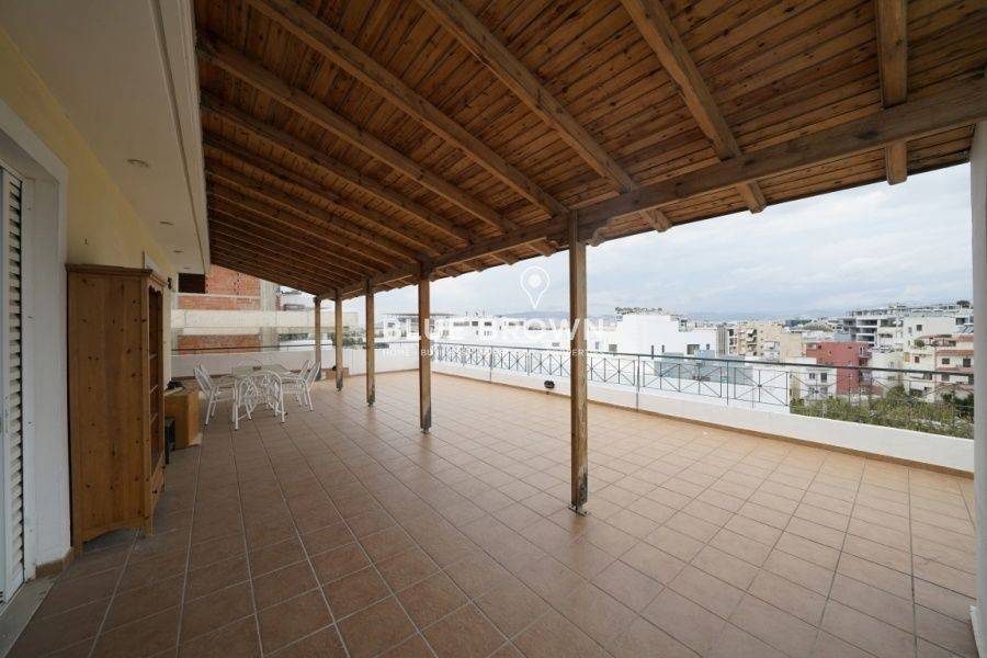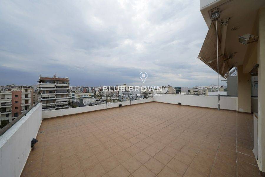 In the southern suburbs, in the area of Palaio Faliro, a penthouse floor apartment of 112 sq.m. on the 6th floor is available for sale. It is a front-facing, airy, and bright property, built in 1996. It comes furnished with electrical appliances (electric stove, refrigerator, microwave oven). It consists of a spacious living room with a fireplace, an independent kitchen with built-in cabinets, 3 bedrooms, one bathroom, and a w/c. It features laminate flooring in the main areas, parquet in the bedrooms, and tiles in the kitchen, aluminum frames with double glazing and screens, awnings on the balconies, security door, alarm system and an elevator. Heating is provided by autonomous oil heating, while air conditioning units are also available for cooling in all rooms, and a solar water heater with a boiler for hot water heating. It has a huge balcony surrounding it, with a total area of 170 sq.m. offering endless view. Additionally, it has a covered parking space of 20 sq.m. and a basement storage room of 9 sq.m. It is located in a very good location, on a quiet street, close to Syngrou and Amfitheas Avenue, with direct access to the market and public transportation.