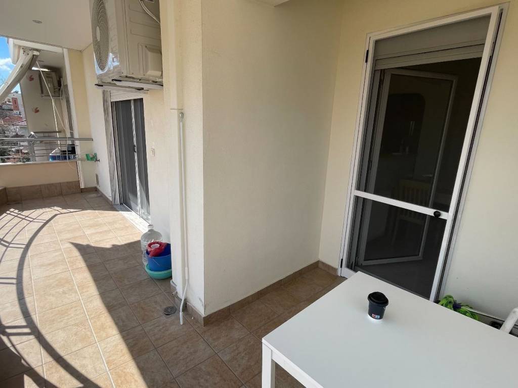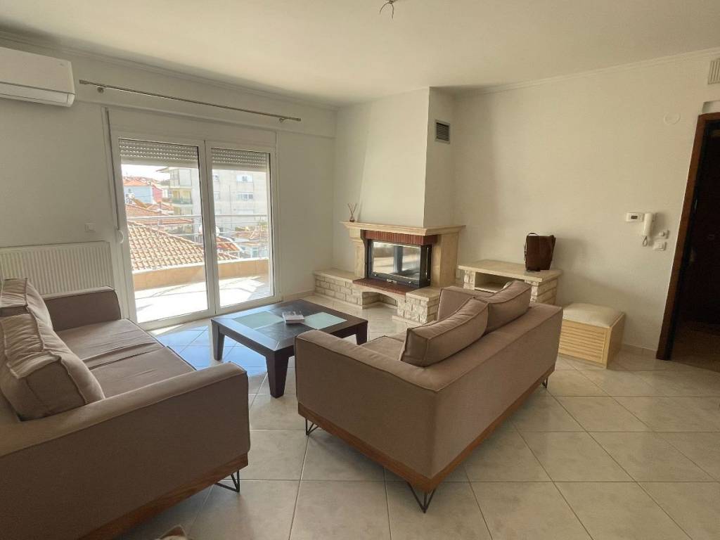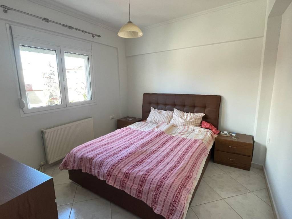Επιπλωμένο διαμέρισμα 90τμ (75τμ καθαρά) με 2 υπνοδωμάτια, σαλοκουζίνα και μπάνιο. Στον 3ο (προτελευταίο) όροφο, διαμπερές, αποθήκη 12 τμ στο υπόγειο και υπαίθρια θέση στάθμευσης για 1 αυτοκίνητο. Ατομικός καυστήρας πετρελαίου, καινούργιο κλιματιστικό inverter, τζάκι, θερμομονωτικά κουφώματα με σίτες, τέντες. Έπιπλα και ηλεκτρικές συσκευές όπως φαίνονται στις φωτογραφίες. Κατασκευή 2005, περιοχή 1ου Δημοτικού Σχολείου.