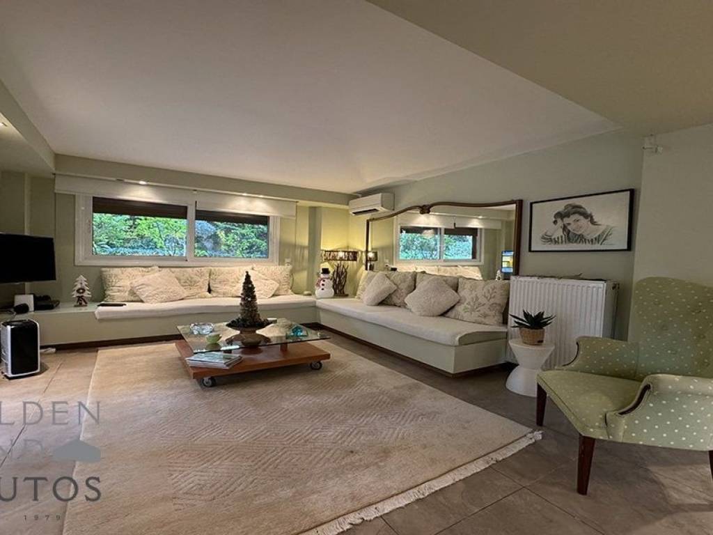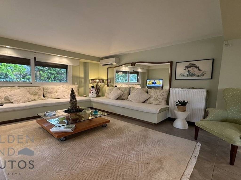 This ground floor apartment in Vouliagmeni offers a spacious living area of 104 sqm. It features 2 bedrooms, 2 bathrooms, and an additional space that guests an office, living room, and kitchen all in one. The apartment comes fully furnished and equipped, providing convenience and comfort to its residents. One of the highlights of this apartment is its exclusive use of the garden, allowing for outdoor relaxation and enjoyment. Built in 2009, this unit provides a more modern living experience compared to other apartments in the building, which was constructed in 1970. The interior is adorned with tiled flooring, while the exterior showcases a well-maintained facade. The apartment is equipped with mosquito window screens to keep insects out, a water heater for hot water supply, and electric blinds and awnings for convenient light control and shading. For cooling and heating, the apartment is equipped with air conditioning units, ensuring a comfortable indoor environment in all seasons. Despite its proximity to the square, the apartment is situated in a quiet spot, providing a peaceful and serene living environment.