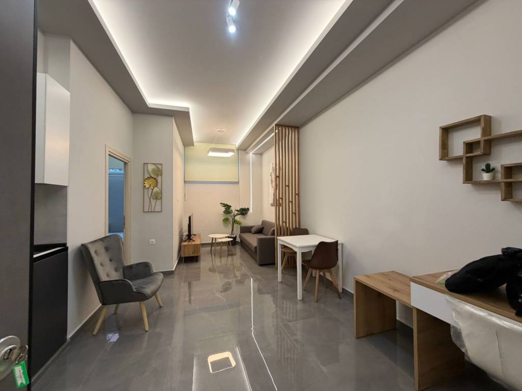 ΕΝΟΙΚΙΑΖΕΤΑΙ ισόγεια γκαρσονιέρα σε σύγχρονο πολυτελές συγκρότημα 6 διαμερισμάτων, πλήρως επιπλωμένη και εξοπλισμένη με ηλεκτρικές συσκευές. Αποτελείται από ένα υπνοδωμάτιο, σαλοκουζίνα και μπάνιο, διαθέτει θέρμανση με air condition.Το συγκρότημα διαθέτει κοινόχρηστο χώρο γυμναστηρίου, ενώ συνολικά ο χώρος χαρακτηρίζεται από πολυτελή αισθητική και αυξημένα επίπεδα ασφάλειας. Τιμή: 450 ευρώ