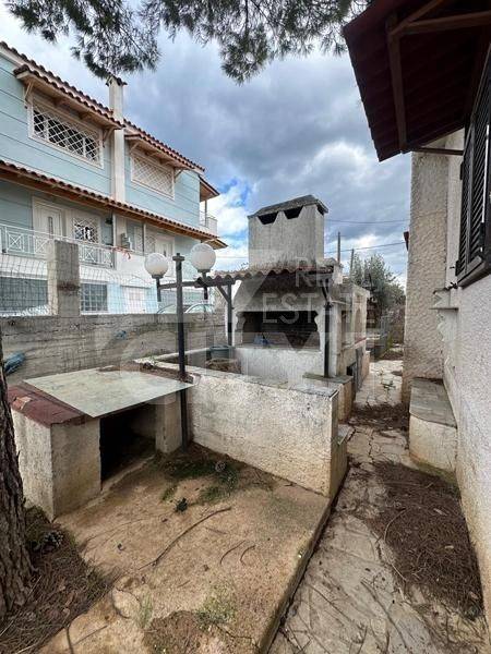 Oropos - Detached House 75sqm plot 300sqm, bedrooms 3, master bedroom, very good condition, year built 1974, energy class D, living room, kitchen, 2 bathrooms, heating type: autonomous (oil), quiet, luminous, storage space, fireplace, balconies, large balconies, aluminum frames, ceramic tiles floors, barbeque, residential zone.