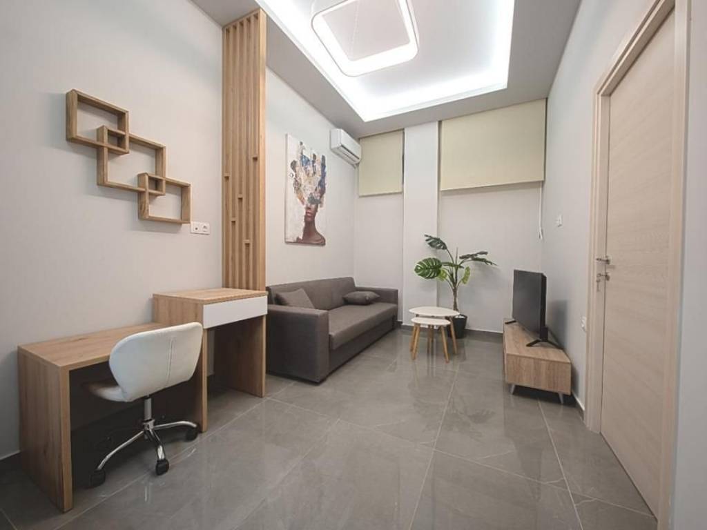 ΕΝΟΙΚΙΑΖΕΤΑΙ ισόγεια γκαρσονιέρα σε σύγχρονο πολυτελές συγκρότημα 6 διαμερισμάτων, πλήρως επιπλωμένη και εξοπλισμένη με ηλεκτρικές συσκευές. Αποτελείται από ένα υπνοδωμάτιο, σαλοκουζίνα και μπάνιο, διαθέτει θέρμανση με air condition.Το συγκρότημα διαθέτει κοινόχρηστο χώρο γυμναστηρίου, ενώ συνολικά ο χώρος χαρακτηρίζεται από πολυτελή αισθητική και αυξημένα επίπεδα ασφάλειας. Τιμή: 450 ευρώ