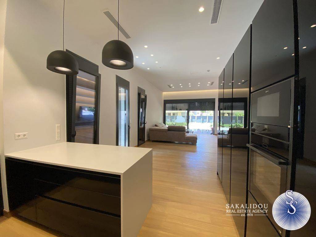 Voula, Kato, brand new modern ground floor apartment 108 sq.m., with private garden and heated pool, fully equipped kitchen, 2 bedrooms, one is master, bathroom, wooden floors, autonomous heating, storage room and two parking spaces. In a very nice neighborhood, near the beach and the center of Glyfada.