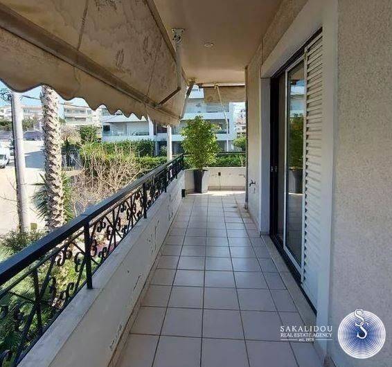 Voula close to the Center, floor apartment for sale of 125 sq.m., 2nd floor, corner, with very good orientation and good view, frontage, bright and airy, in very good condition, built in 1994, has perimeters large terraces, comfortable and very bright living room / sitting room area with fireplace, separate and cozy kitchen area, 3 bedrooms, 1 bathroom, 1 wc, large and bright bedrooms with closets, autonomous heating (natural gas), a/c, solar, security door, alarm, CCTV, awnings, wooden floors and tiles, storage room, elevator, 2 parking spaces, garden, in a nice location, close to the square, public transport and distance from the sea (m): 500.