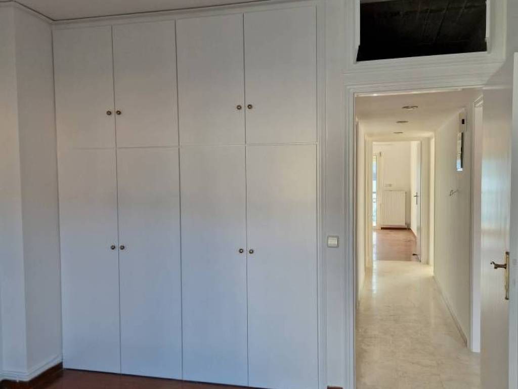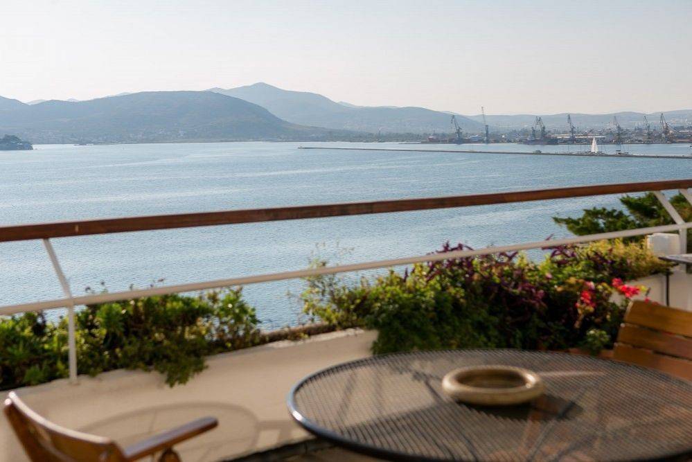 Outside there is a covered balcony facing the park, another covered balcony of the second bedroom facing Pelion, and a large veranda overlooking the port, the city, and the mountain.