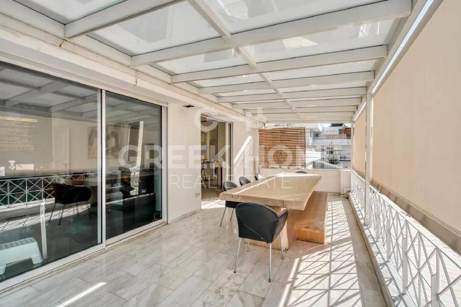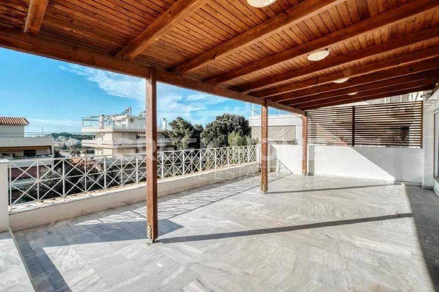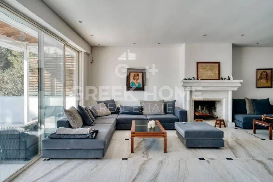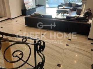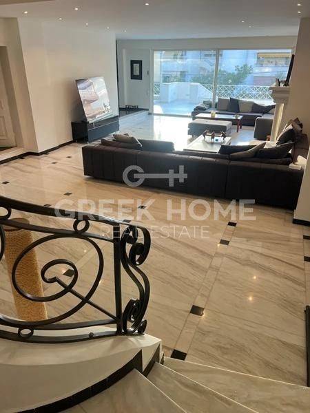 Vouliagmeni - Apartment 320sqm partially furnished, bedrooms 5, ground floor - 1st, renovated, year built 1986, renovation year 2020, energy class E, living room, hall, kitchen, 4 bathrooms, heating type: autonomous, air condition, parking open space,2, quiet, dual aspect apartment, luminous, sea view, storage space, solar heater, boiler, fireplace, balconies, large balconies, garden, built in appliances, aluminum frames, double glazed windows, door screen, wood & marble floors, separate kitchen, office, secure door, alarm, luxurious, barbeque, service room, internet, sea front, special offer, close to sea (up to 200m).