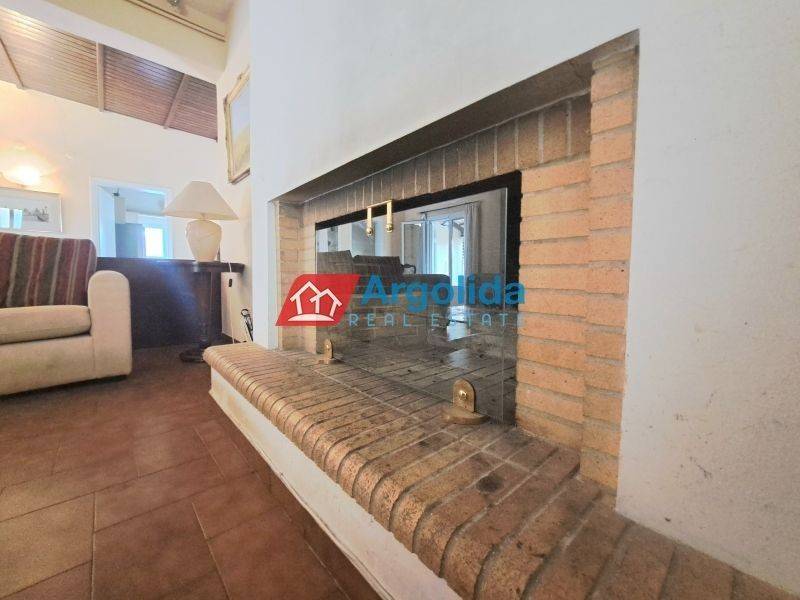 Located in Solomos, Corinth, just a short distance from the city of Corinth, this ground-floor detached house of 150 sq.m. sits on a 2,000 sq.m. plot and is ideal for both permanent residence and holiday use. Built in 1985 and classified in Energy Category D, the property includes four bedrooms, a comfortable living room, kitchen and three bathrooms, while offering autonomous oil heating, a fireplace, A/C, aluminium frames with double glazing, insect screens and a security door. The outdoor area features an impressive 48 sq.m. swimming pool (4×12 m), a spacious garden, a BBQ area with a traditional wood-fired oven, a 20 sq.m. storage room and parking space for three cars. The estate consists of two independent residences connected through an elegant outdoor patio with a pergola and wide verandas enjoying unobstructed views of the Ancient Corinth Castle and the surrounding natural landscape. The guest house includes three bedrooms and one bathroom, while the main residence offers a bright living-dining area with a fireplace, a fully equipped kitchen with cooking hobs, refrigerator, dishwasher and oven, a bathroom and a comfortable master bedroom with an en-suite bathroom. The villa also provides a private entrance, air conditioning in all rooms, a washing machine and a veranda overlooking the Acrocorinth. Just 10 minutes by car from the suburban railway station, with direct connection to Athens International Airport, the property combines the tranquillity of nature with immediate access to all central points of Corinthia. A remarkable opportunity for those seeking privacy, comfort and a high standard of living.
