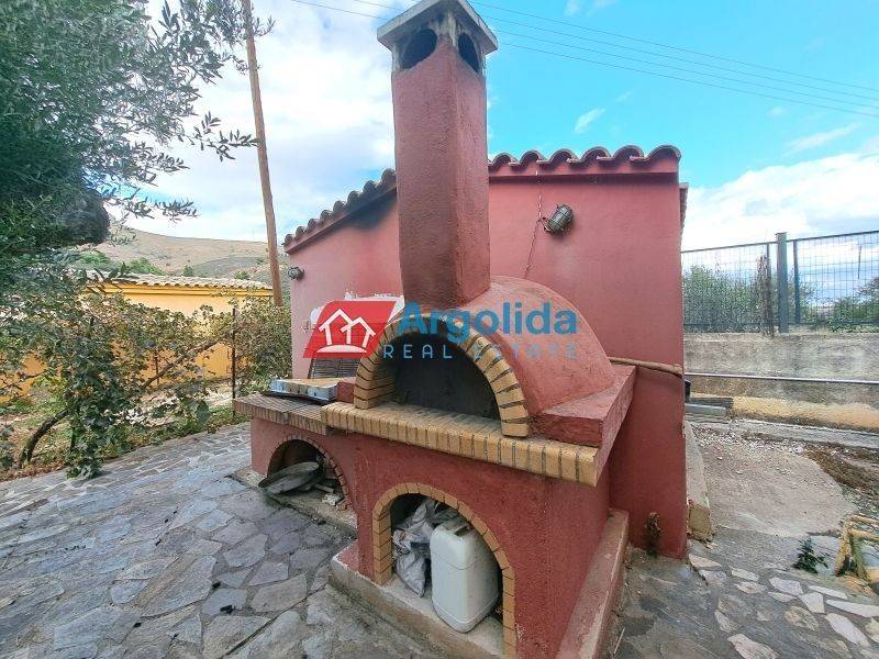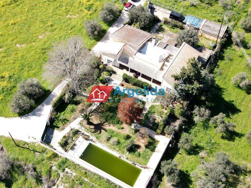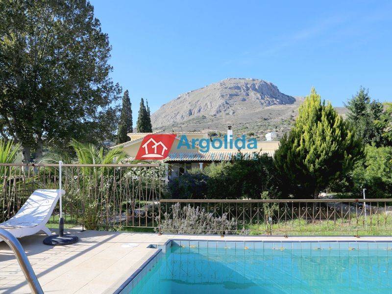In Solomos, Corinthia, just a short distance from the city of Corinth, a ground-floor house of 150 sq.m. is offered for sale on a 2,000 sq.m. private plot, ideal as either a permanent residence or a holiday home. Built in 1985 and classified as Energy Class D, the property includes four bedrooms, a comfortable living room, kitchen, and three bathrooms, along with autonomous oil heating, a fireplace, air conditioning, double-glazed aluminum windows, insect screens, and a security door. Outdoors, the highlight is the impressive 48 sq.m. swimming pool, the large landscaped garden, a BBQ area with a traditional wood-oven, a 20 sq.m. storage room, and parking space for three cars. The property consists of two independent residences connected through an elegant outdoor patio with a pergola and spacious verandas featuring unobstructed views towards the castle of Ancient Corinth and the surrounding natural landscape. The guest house includes three bedrooms and one bathroom, while the main residence offers a bright living-dining area with a fireplace, a fully equipped kitchen with cooktop, refrigerator, dishwasher and oven, a bathroom, and a comfortable master bedroom with an en-suite bathroom. Additional features include a private entrance, air conditioning throughout, a washing machine, and a veranda overlooking the Acrocorinth. The property is located just 10 minutes from Corinth and all central amenities, and 5 minutes from the suburban railway station with direct connection to Athens International Airport. The home requires some renovation, mainly in the outdoor areas, gardens and pool, making it a great opportunity for those seeking a spacious property with privacy in a peaceful, green setting.