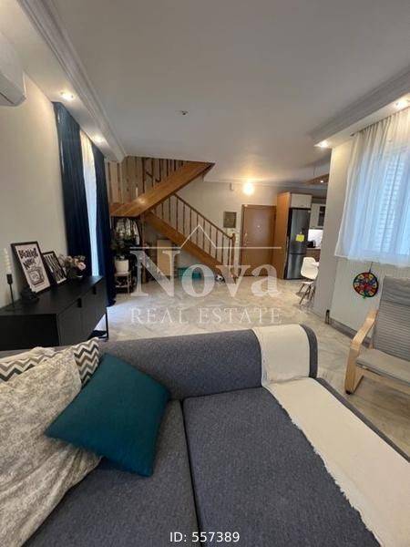 Peristeri, Aspra Chomata - Maisonette 110sqm bedrooms 3, levels 2, 2nd - 3rd, year built 1992, renovation year 2006, energy class D, living room, kitchen, bathroom, wc, heating type: autonomous (oil), parking ground floor, quiet, exposure, luminous, facade, painted, storage space, balconies, tents, aluminum frames, double glaze windows, door screen, marble floors, secure door, luxurious, internal stairs.