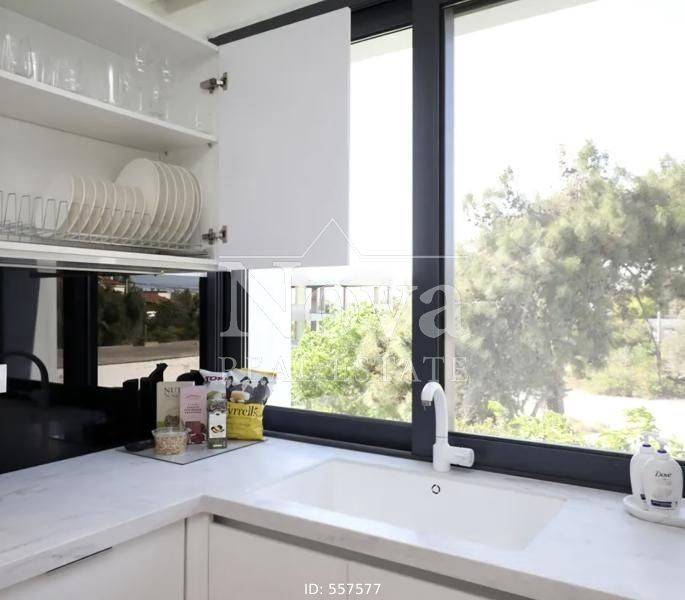 Elliniko, Kato Elliniko - Apartment 141sqm bedrooms 3, 1st, fully renovated, year built 2017, energy class A, living room, kitchen, bathroom, wc, heating type: autonomous (oil), parking, quiet, unobstructed view view, storage space, solar heater, fire place, balconies, large balconies, tents, elevator, garden, aluminum frames, double glaze windows, door screen, secure door, alarm, swimming pool, close to sea (up to 200m).