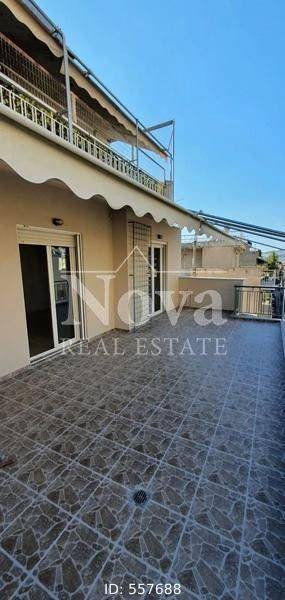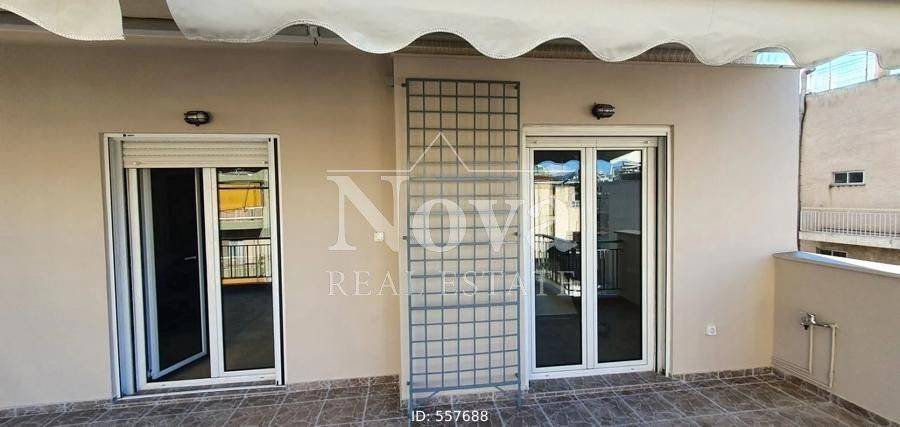 Agios Nikolaos (Attica - Athens Centre) - Apartment 90sqm bedrooms 2, 4th, penthouse, excellent condition, year built 1975, renovation year 2024, energy class A, living room, hall, kitchen, bathroom, heating type: central (natural gas), air condition, quiet, exposure, luminous, facade, painted, rolling shutter, solar heater, balconies, large balconies, tents, elevator, storage space in house, aluminum frames, double glaze windows, door screen, wood & tile floors, separate kitchen, secure door, video doorbell, close to metro/train (up to 500m), close to national road (up to 1000m).