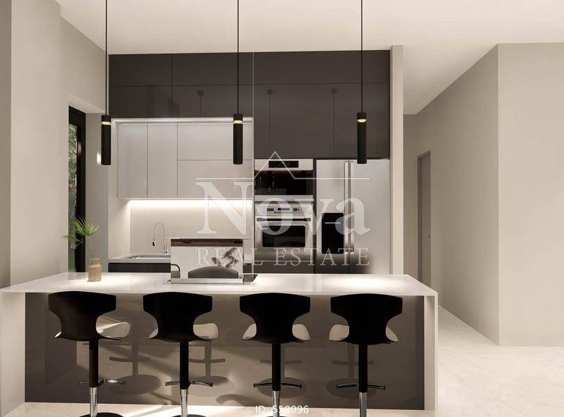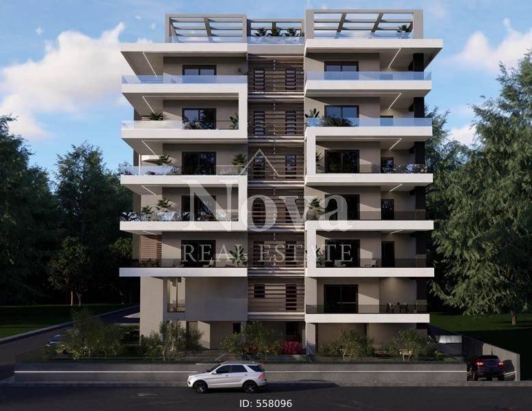Alimos - Apartment 95sqm bedrooms 2, 1st, under construction, year built 2025, energy class A+, living room, kitchen, bathroom, wc, heating type: autonomous (fan coil), parking covered, quiet, exposure, luminous, facade, painted, storage space, solar heater, external thermal insulation, fire place, balconies, large balconies, elevator, thermal shut-off frames, double glaze windows, door screen, wood & tile floors, three phase electricity, secure door, alarm, video doorbell, luxurious.