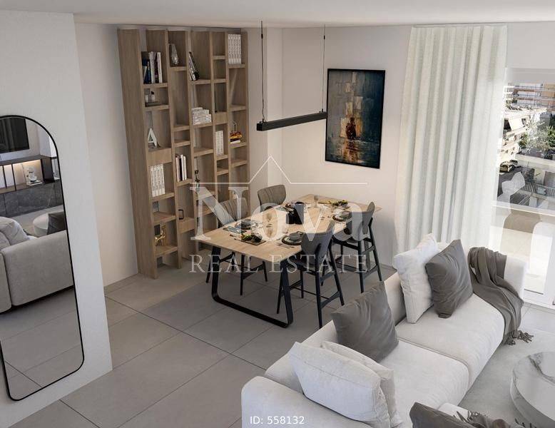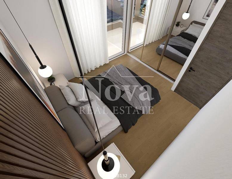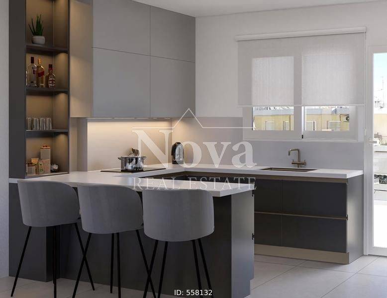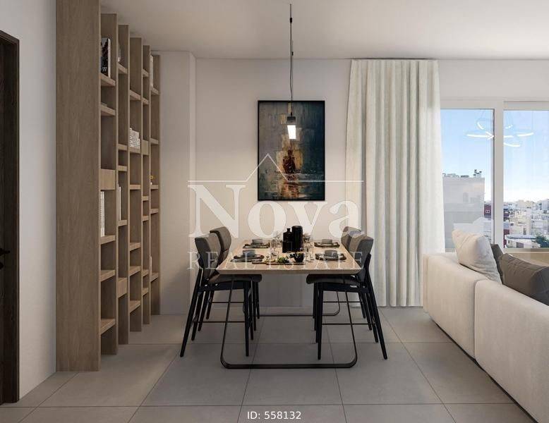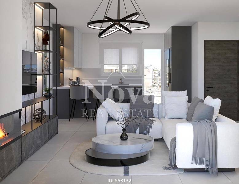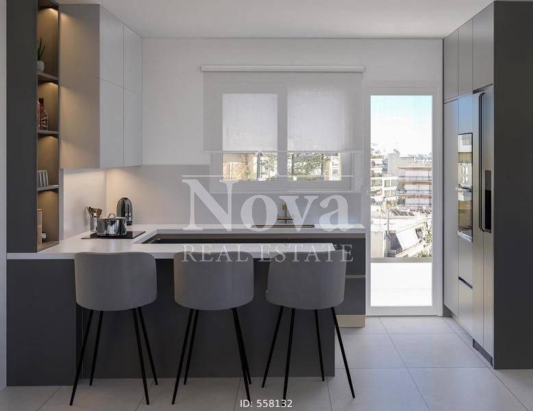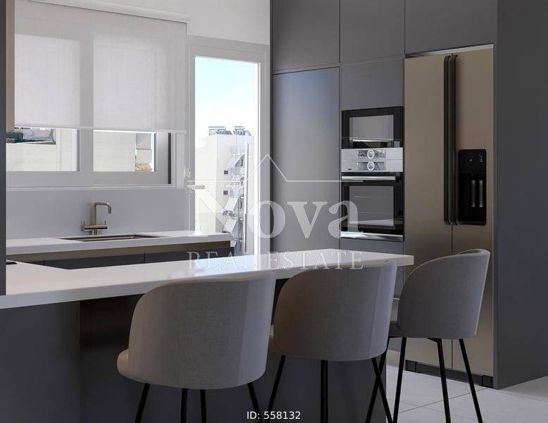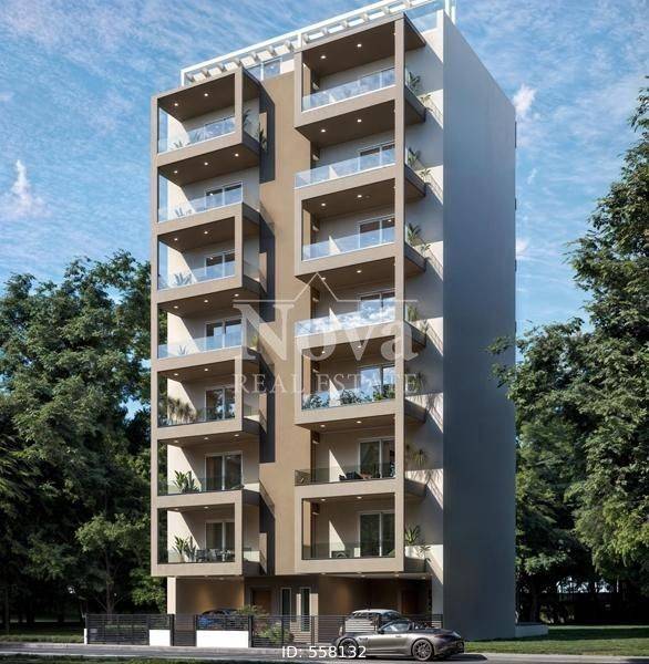 Nea Smyrni - Apartment 96sqm bedrooms 2, 6th, under construction, year built 2025, energy class B+, living room, kitchen, 2 bathrooms, heating type: autonomous (natural gas), parking, quiet, exposure, luminous, unobstructed view, facade, painted, storage space, solar heater, external thermal insulation, fire place, balconies, large balconies, elevator, thermal shut-off frames, double glaze windows, door screen, wood & tile floors, three phase electricity, secure door, alarm, video doorbell, north-western orientation.