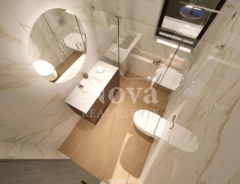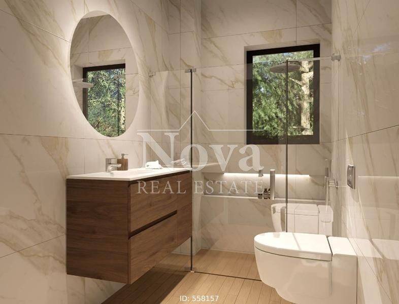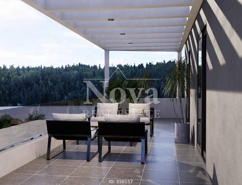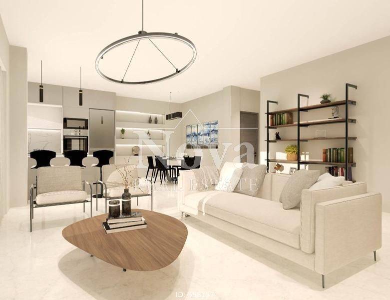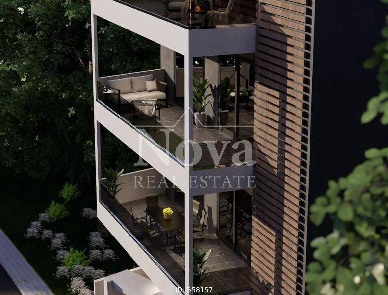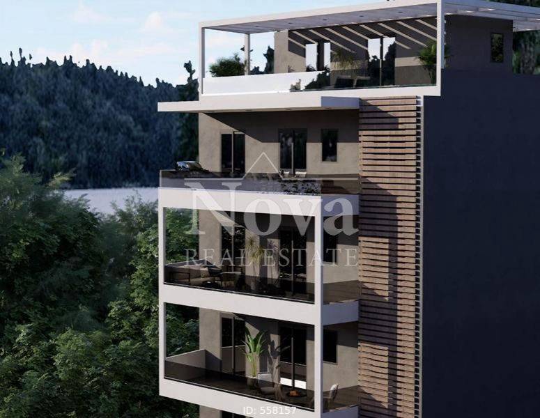 Nea Smyrni - Apartment 77sqm bedrooms 2, 7th, penthouse, under construction, year built 2025, energy class A+, living room, kitchen, 2 bathrooms, heating type: autonomous (natural gas), parking, quiet, exposure, luminous, unobstructed view, facade, painted, storage space, solar heater, external thermal insulation, balconies, large balconies, elevator, thermal shut-off frames, double glaze windows, door screen, wood & tile floors, three phase electricity, secure door, alarm, video doorbell, western orientation.