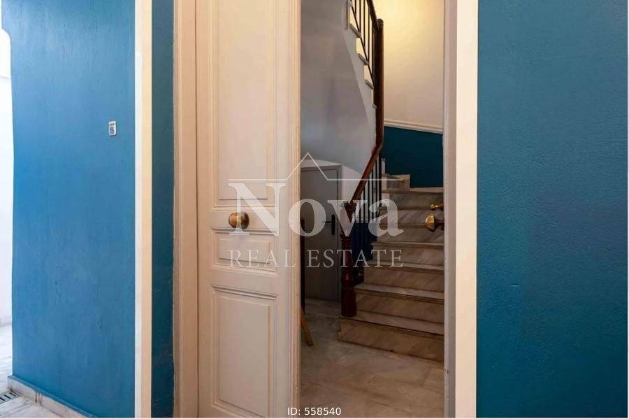 Koukaki - Detached House 268sqm bedrooms 4, levels 3, basement - ground floor - 1st, fully renovated, year built 1935, renovation year 2018, energy class F, living room, hall, kitchen, semi-outdoor space, 2 bathrooms, heating type: autonomous (oil), air condition, quiet, exposure, luminous, facade, painted, storage space, storage space in house, garden, private terrace, aluminum frames, double glaze windows, wood floors, separate kitchen, without shared expenses, luxurious, internal stairs, guest house, lighting rod, eastern orientation.