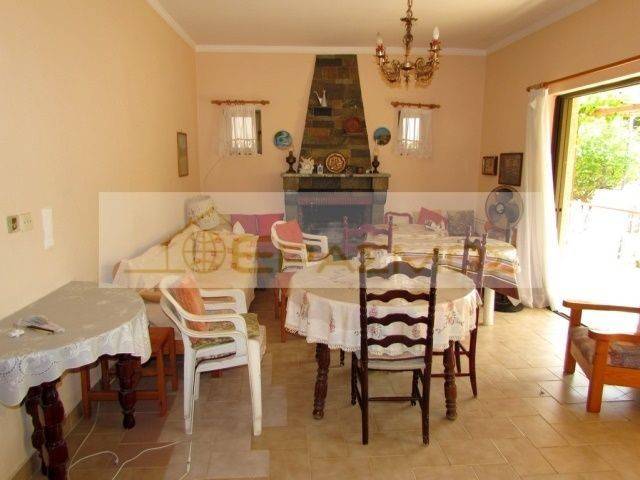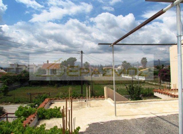 Vrachati village near Corinth, detached house of 80 sq.m. on a plot of 300 sq.m. with the possibility of building an additional floor, close to the beach, raised ground floor with 3 bedrooms, comfortable living-dining room with fireplace, large terraces with unlimited view, kitchen with access, parking, storage, air conditioning, tiled floors, drilling, aluminum frames and is located in a quiet and green environment