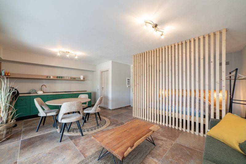 The energy-efficient fireplace not only provides warmth but also style, while the heat pump ensures comfort in all seasons, with modern energy performance. The exterior space surrounding the apartment is stylishly landscaped, with tasteful trees and well-maintained flower beds adding a pleasant touch. On the ground floor of the building, there is a fully landscaped and autonomous 45 sq.m. apartment, ideal for hosting guests. The kitchen, bathroom, and open-plan room excellently shape the space. The apartment belongs to a two-story building consisting of two floor apartments, offering complete privacy, tranquility, and a sense of independence that is rarely found. This is a space not just built to be inhabited, but to embrace feelings, moments, and quality of life. If you are looking for luxury, warmth, and aesthetic beauty in a property with character, this apartment is the ultimate choice.