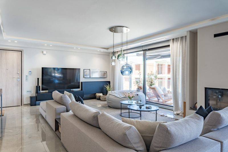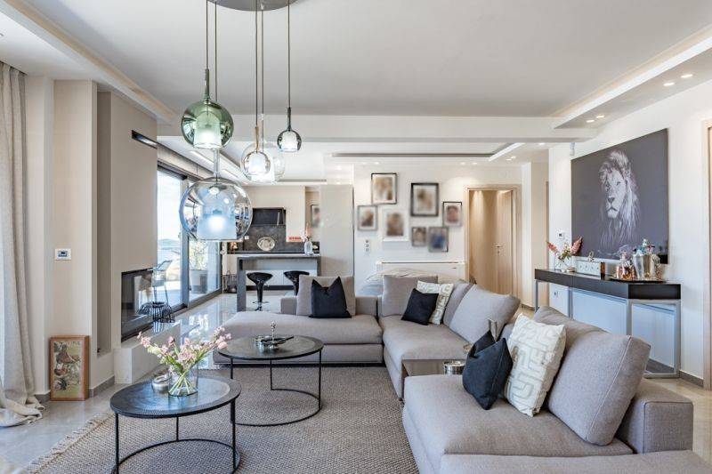 Property Code: 30-1-19198 - Apartment FOR SALE in Eleftheres Nea Peramos for € 460.000 Exclusivity. This 135.00 sq. m. Apartment is on the 1 st floor and features 3 Bedrooms, an open-plan kitchen/living room, 3 bathrooms . The property also boasts Heating system: Heat pump, tiled floor, view of the Sea, Window frames: Aluminium, Armourplated door, parking, a storage unit sqm, garden, fireplace, jacuzzi, A/C, electrical appliances, awnings, insect screens, double-glazed windows, solar-powered water heater, boiler, entry stairs, BBQ, ceramic roof, dressing room, CCTV cameras, open space, balconies: 30 sqm. The building was constructed in 2021 . Building Energy Rating: A Distance from sea 300 meters, Distance from the city center: 15000 meters, Distance from nearest village: 2000 meters, Distance from nearest airport: 45000 meters,