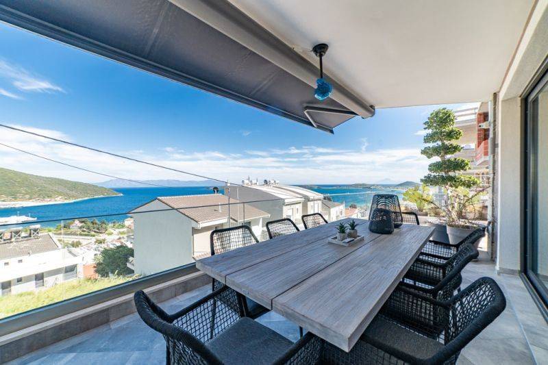 Just a breath away from the sea, in the Korelko area, awaits you a unique apartment that combines architectural finesse with the warmth of a "home." This is a luxurious floor apartment built in 2021 on the first floor, with high aesthetic decoration, ideal for those seeking something more than just a simple residence. Entering the space, you are greeted by a bright and open living room, kitchen, and dining area, where clean lines, quality materials, and earthy tones dominate. The modern décor is highlighted by the subtle spotlights that illuminate every corner with elegance, creating a warm atmosphere. The apartment features two bedrooms with a modern aesthetic and ergonomic layout, while the third room is a spacious master bedroom, designed to provide comfort and privacy. The bathroom is constructed with luxurious materials and timeless aesthetics. From the large, open balcony, an enchanting, unobstructed view unfolds before you, giving a sense of freedom and tranquility.