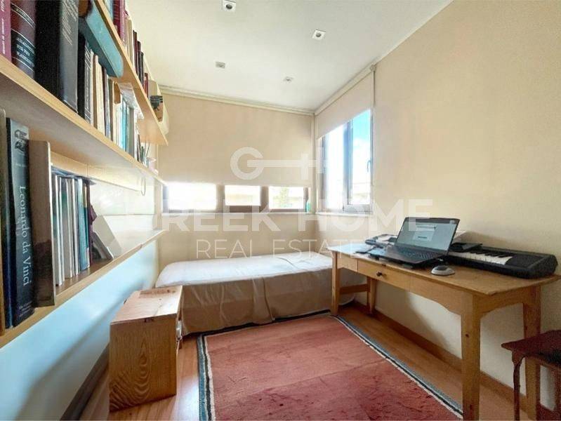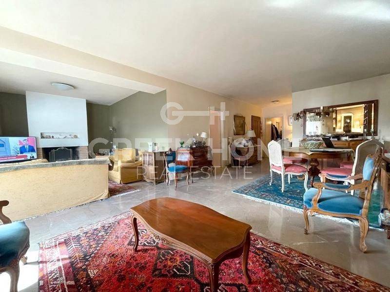 Holargos - Apartment 127sqm bedrooms 3, 4th, good condition, year built 1979, renovation year 2024, energy class E, living room, kitchen, bathroom, wc, heating type: individual unit (natural gas), air condition, parking covered, quiet, dual aspect apartment, unobstructed view, solar heater, fireplace, balconies, tents, elevator, aluminum frames, double glazed windows, door screen, wood floors, separate kitchen, secure door, east-southern orientation, close to metro/train (up to 1500m).