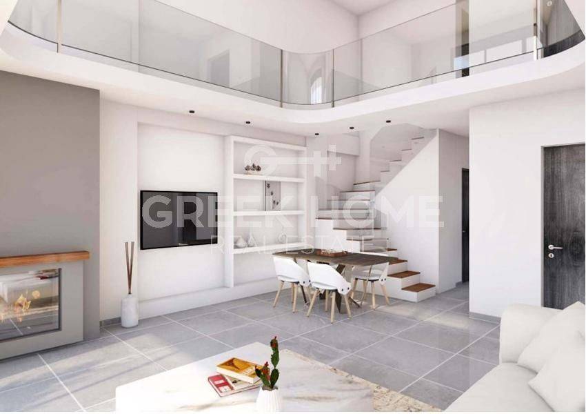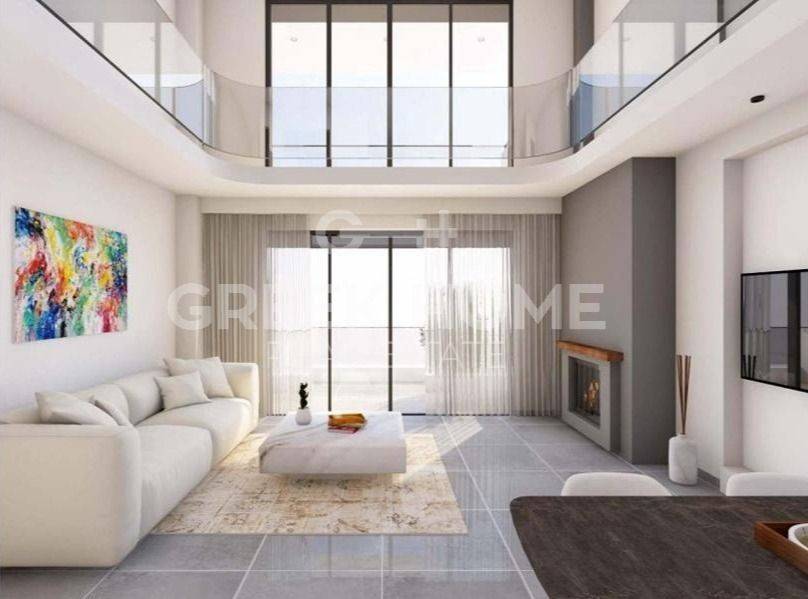 Pallini (Attica - Eastern Suburbs) - Full floor Maisonette 140sqm levels 2, 3rd - 4th, year built 2026, energy class A, living room, hall, 3 kitchens, bathroom, wc, heating type: autonomous (heat pump), air condition, parking ground floor, quiet, luminous, unobstructed view, painted, drop ceiling, electric roller shutters, storage space, solar heater, external thermal insulation, balconies, large balconies, elevator, private terrace, terrace 30sqm, thermal shut-off frames, double glazed windows, door screen, wood & tile floors, handicap ramp, secure door, alarm, surveillance cameras, video doorbell, luxurious, internal staircase, barbeque, playroom, ev charger, satellite, internet.