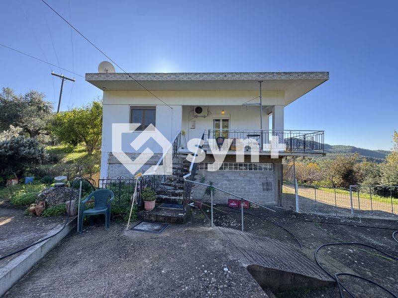 For sale: a two-level detached house of 140 sq.m. set on a 6,000 sq.m. plot with productive olive trees, located in Rodina, Municipality of Zacharo, Ilia, Western Peloponnese, Greece. The property enjoys a peaceful setting just before the entrance of the village, offering open views towards the mountains and the Ionian Sea. It is an ideal choice for buyers seeking a house with land in Zacharo, an olive grove property in Greece, or a rural home in the Peloponnese near the sea.