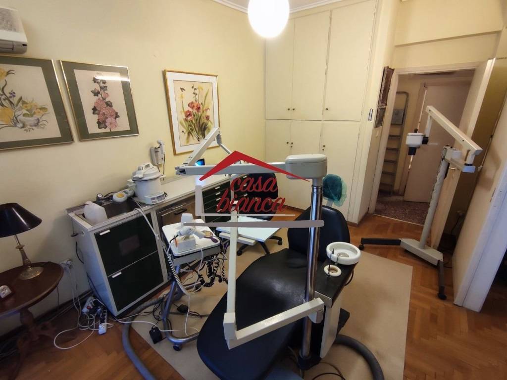 In the heart of Kallithea, and near the Tavros ISAP station, at the most central point of the market with immediate access to public transportation, a professional space ideal for a dental practice is available. It is street-facing and bright. The property features a large open-plan area divided by a sliding door, a bathroom, a kitchen that can function as a laboratory. It includes air conditioning, an intercom system with video, and a veranda. The space operated as a dental practice and is available, if desired, furnished and with basic equipment, such as a desk, armchairs, sofa, chairs, a trolley (unused), and a Japanese-made Belmont dental unit by Belmont. It is intended exclusively for professional use, constituting an excellent choice for a medical practice in one of the most commercial and accessible points of the area. *There is the possibility of a parking rent. Contact www.mycasabianca.com info@mycasabianca.com +30 2109574700-01 price 680€, code 4575