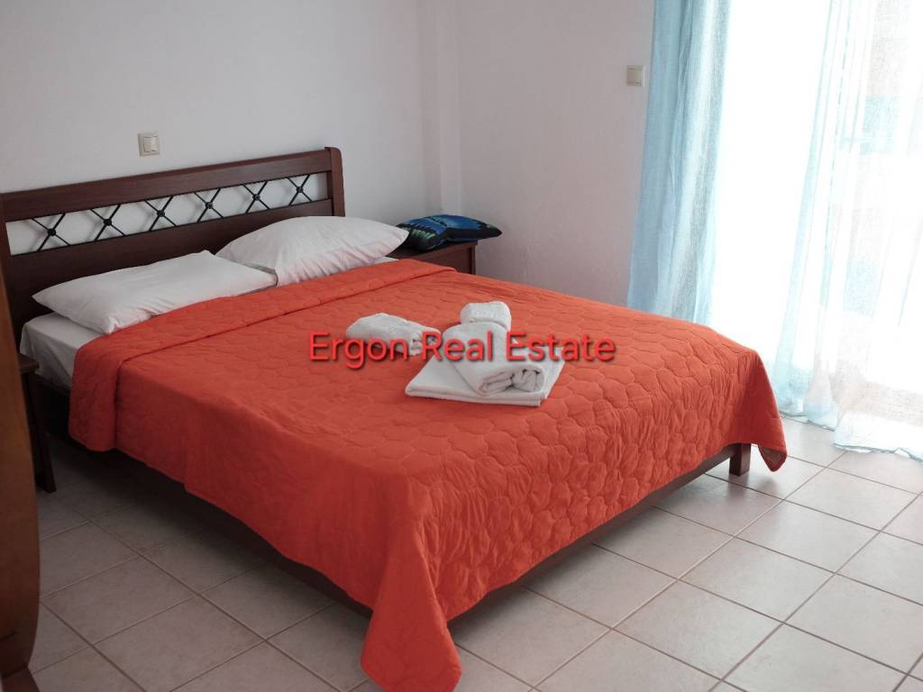 In Kallithea, Halkidiki, a furnished, excellently constructed apartment is available for sale. It consists of one comfortable bedroom, an open-plan living room with kitchen, and a bathroom with a bathtub.