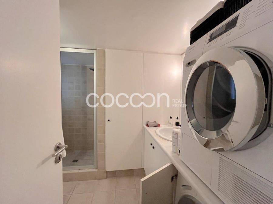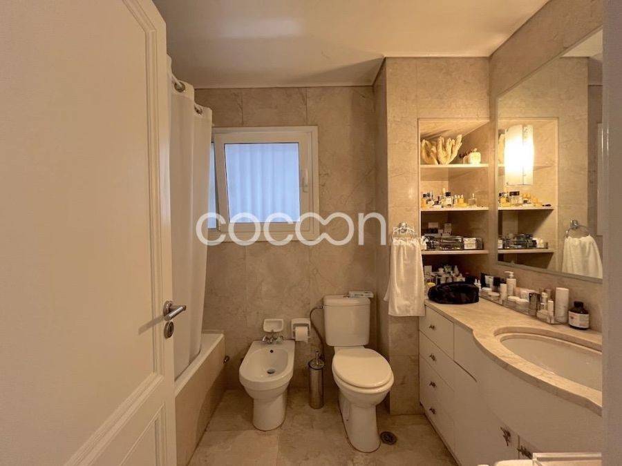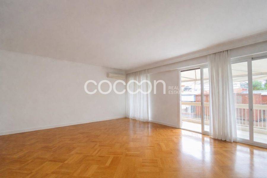 Γωνιακό διαμέρισμα 155τ.μ. στον 4ο όροφο αρχοντικής πολυκατοικίας κατασκευής 1967, σε ήσυχο δρόμο στο Κολωνάκι, ανακαινισμένο το 2008. Αποτελείται από χωλ εισόδου, όπου δεξιά του υπάρχει WC επισκεπτών και αριστερά γκαρνταρόμπα σε εσοχή. Το σαλόνι είναι μεγάλο και έχει ανοίγματα σε μπαλκόνι στην πλαϊνή πρόσοψη που βρίσκεται σε πεζόδρομο με σκαλάκια. Η τραπεζαρία έχει επίσης άνοιγμα στο μπαλκόνι, συρόμενη διπλή πόρτα προς το σαλόνι, και άλλη μία πόρτα προς την κουζίνα. Η κουζίνα είναι πλήρως εξοπλισμένη (εκτός από το ψυγείο) και έχει επίσης μπαλκονόπορτα και παράθυρο σε φωταγωγό. Τα δωμάτια είναι 2 και τα μπάνια 2, ένα από αυτά με ντους και ντουλάπι για πλυντήριο/στεγνωτήριο. Περισσότερα χαρακτηριστικά: - φωτεινό, γωνιακό, με πολλές ντουλάπες και καλή διαρρύθμιση - θέρμανση - κλιματιστικά σε όλους τους χώρους - κουφώματα αλουμινίου με διπλά τζάμια - πόρτα ασφαλείας - θυροτηλεόραση - αποθήκη 7τ.μ. στο ισόγειο