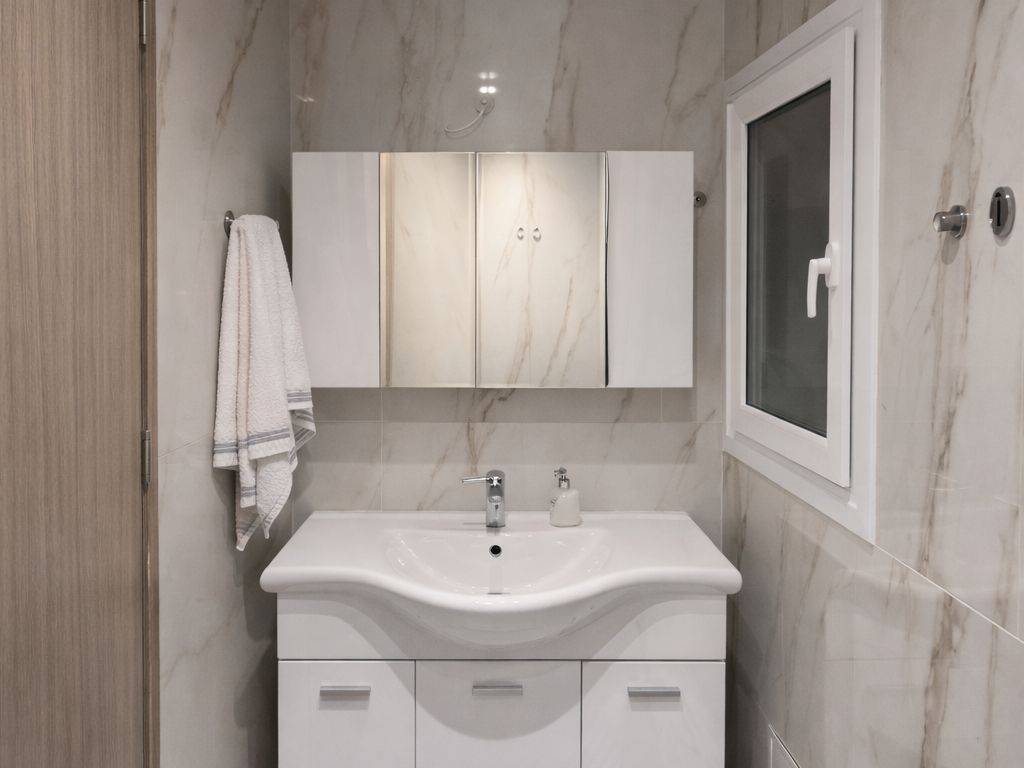 An excellent, fully renovated 70 sq.m. ground-floor apartment is offered for sale in a highly central location. The property features two comfortable bedrooms, a modern open-plan living room and kitchen, a bathroom, a front balcony, and a spacious rear veranda offering privacy and additional outdoor relaxation space. It is equipped with aluminum window frames with double energy-efficient glazing, a reinforced security door, and a solar water heater, ensuring comfort, energy efficiency, and security throughout the year. The renovation has been completed using high-quality materials with attention to detail and contemporary aesthetics. The apartment is delivered fully equipped with all electrical appliances installed, ready for immediate occupancy or rental exploitation with no additional expenses required. The property is located next to a metro station and bus stops, as well as cafés, supermarkets, and retail stores, providing immediate access to all daily amenities. Asking Price: €175,000 Contact hours strictly after 19:00.