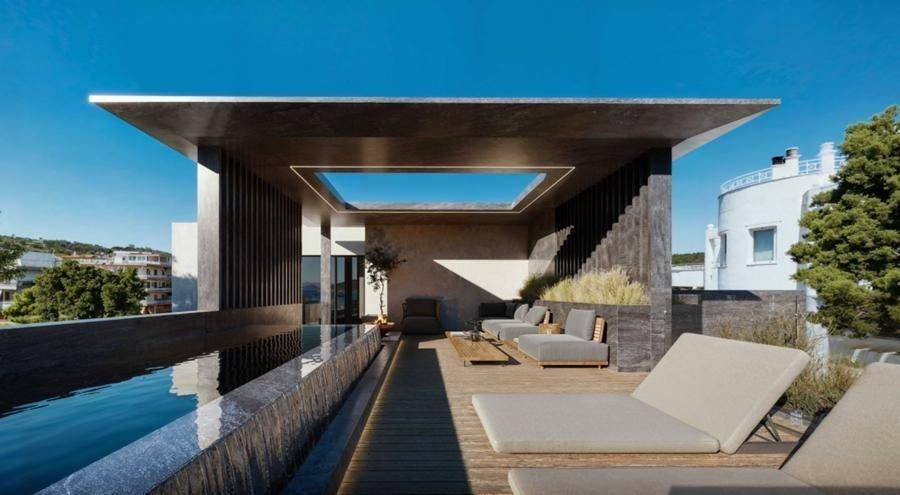 Vari, Varkiza - Full floor Maisonette 210sqm bedrooms 4, master bedrooms 3, levels 2, 4th (130sqm, 3 bedrooms, living room, dinning room, kitchen, 3 bathrooms) - 5th (80sqm, 1 bedrooms, kitchen, bathroom, wc), penthouse, under construction, constructionstage concrete, year built 2024, energy class A++, living room, 2 kitchens, 4 bathrooms, wc, heating type: autonomous (heat pump), air condition, a/c type vrv, parking covered,2, quiet, dual aspect apartment, luminous, sea view, frontage, painted, drop ceiling, electric roller shutters, storage space 8sqm, solar heater, boiler, external thermal insulation, fireplace, balconies, large balconies, balcony 60sqm, tents, elevator, private terrace, terrace 60sqm, double glazed windows, door screen, wood floors, three phase electricity, night electricity discount rate, secure door, alarm, surveillance cameras, video doorbell, luxurious, under floor heating, private pool, internal staircase, smart home, cloakroom, guest house, ev charger, laundry room, pets allowed, residential zone, western orientation, access from asphalt, price is negotiable, close to entertainment (up to 500m), close to market (up to 500m), close to sea (up to 500m).