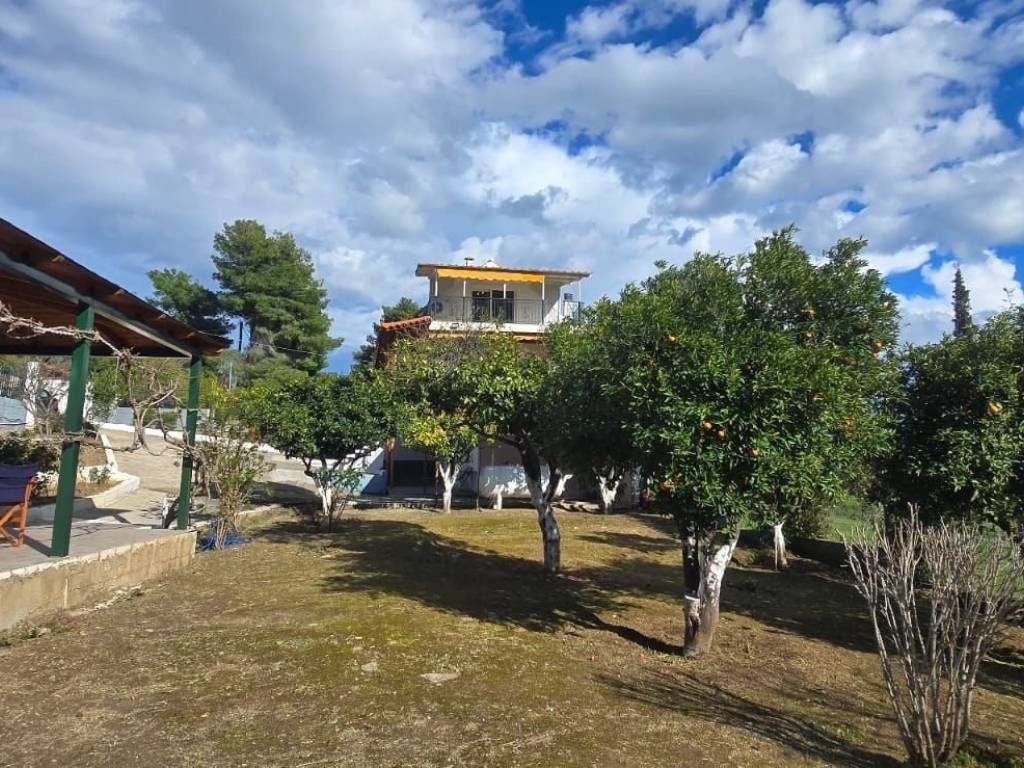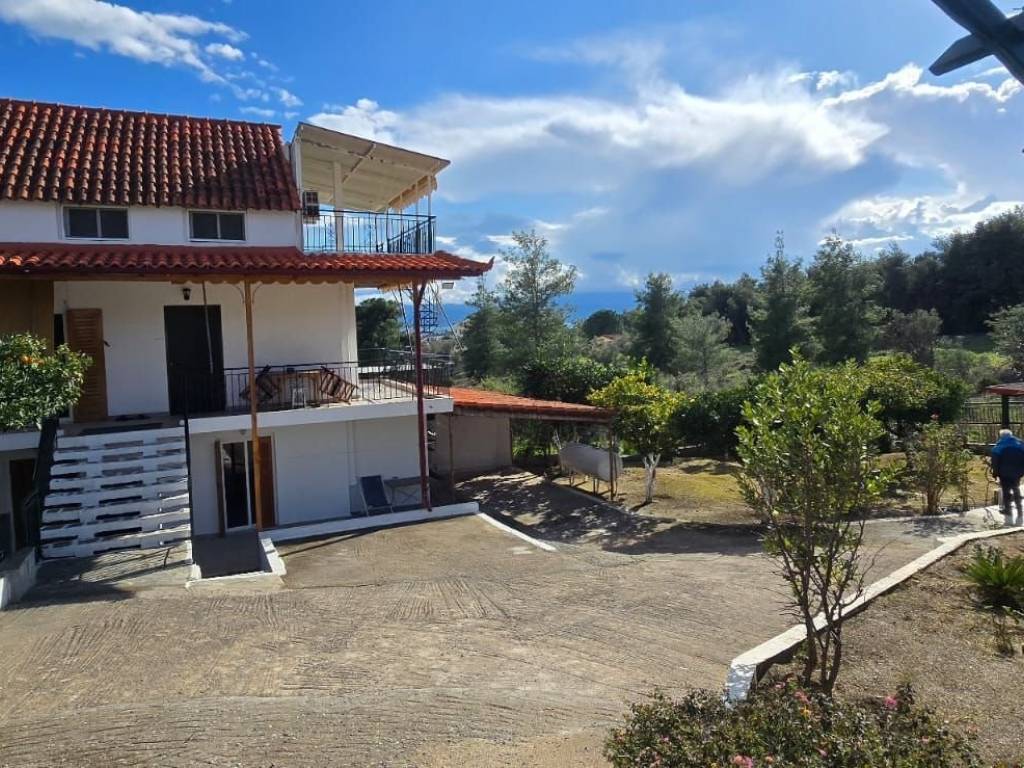 Description A well-maintained three-story house located in Eretria on the island of Evia, 1 hour and 15 minutes from Athens International Airport. The property sits on a generous plot of 746 sqm with dual entrance access, offering a comfortable combination of indoor living space and functional outdoor areas. Property Structure & Layout The house spans three levels, each approximately 30 sqm, totaling around 90 sqm of interior living space. Ground Floor / Lower Level: Two bedrooms, a bathroom, and independent glass door access from the lower side of the plot Main Level: An open-plan kitchen and living room with a fireplace. Aluminum-framed double-glazed windows throughout ensure energy efficiency and noise reduction. Wooden shutters add character consistent with the home's traditional aesthetic. Upper Level: A self-contained studio with a kitchenette and a private balcony offering unobstructed views of both the sea and the surrounding mountains — a standout feature of this property. New flooring has been installed throughout all interior rooms and balconies. Heating & Climate Control Gas-powered central heating Air conditioning units installed Outdoor & Additional Facilities Covered pergola with a new outdoor kitchen, barbeque area shower, and Karistos-stone tiling — fully enclosed and functional year-round New external WC Small external storage room Working borehole (drilled well) connected to the irrigation system — cost-efficient garden watering Citrus and olive trees on the grounds Two separate entry points to the plot Key Highlights ✔ Sea and mountain views from the upper level ✔ Large plot (746 sqm) with mature fruit trees ✔ Dual access to the property ✔ New flooring throughout ✔ Self-sufficient outdoor entertaining area ✔ ~75 minutes from Athens Airport — accessible island location Suitable as a permanent residence, holiday home, or investment property with rental potential. Price: 170,000 Euro CODE: UN 0206 CATEGORY : DETACHED HOUSE AREA: ERETRIA ACREAGE : 90 sqm PLOT AREA: 746 sqm STORAGE: YES FLOORS: 3 BEDROOMS: 3 KITCHEN: 1 LIVING ROOM: 1 RESTROOMS: 3 YEAR OF CONSTRUCTION: 1979 FURNISHED : SOME FRAMES ALUMINUM : YES DOUBLE GLAZING : YES TYPE OF FLOORS : TILES ENERGY CLASS: D VIEW : SEA/MOUNTAIN DISTANCE FROM THE SEA: 700m ZONE : COUNTRY