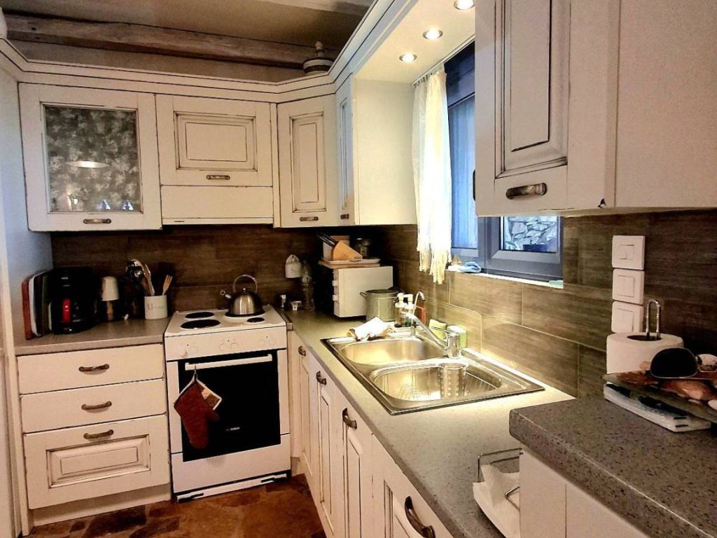 This beautiful maisonette is for sale in the Lianni Ammos area near Agioi Apostoli, just 300m. from the sea! If you are looking for a quiet, idyllic place for your holidays with a view of the Aegean Sea, then this is your destination! The maisonette has three levels. On the ground floor there is a spacious kitchen in a single space with the living room, made in country style, with white cabinets and furniture, reminiscent of a Greek island. It also has a corner fireplace for nature lovers and winter. On the same level there is a well-maintained garden with barbecue and gazebo with an incredible view that will take your breath away! A large monastery table is there for you to spend beautiful moments with your guests as well as various garden furniture! On the first floor there are two bedrooms with double beds, which have a view and access to a balcony and a bathroom! The advantage of this house is that it has a spacious basement room with its own bathroom so you can host your guests or if you are a large family, ideal for children! The maisonette belongs to a complex consisting of 7 maisonettes within a 7-acre plot! It has a garage door which closes automatically and ensures the safety of the residents of the complex. The construction is from 2010, which is excellent, with thermal insulation and a water collection system so that there is never a problem of lack of it.
