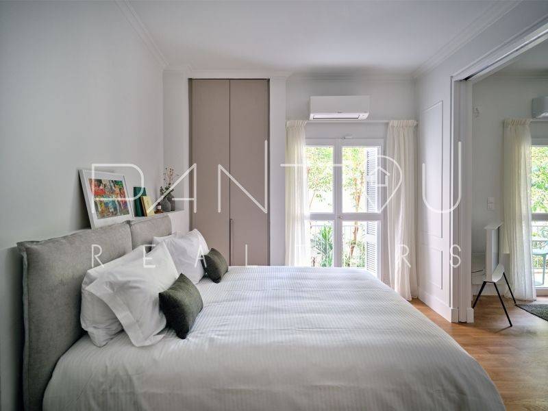 The apartment sits on the ground floor of a five-storey building on a 268 sqm plot, built in 1958 and completely renovated in 2025.The sensation, however, has nothing to do with “ground floor” as understood elsewhere in Athens.