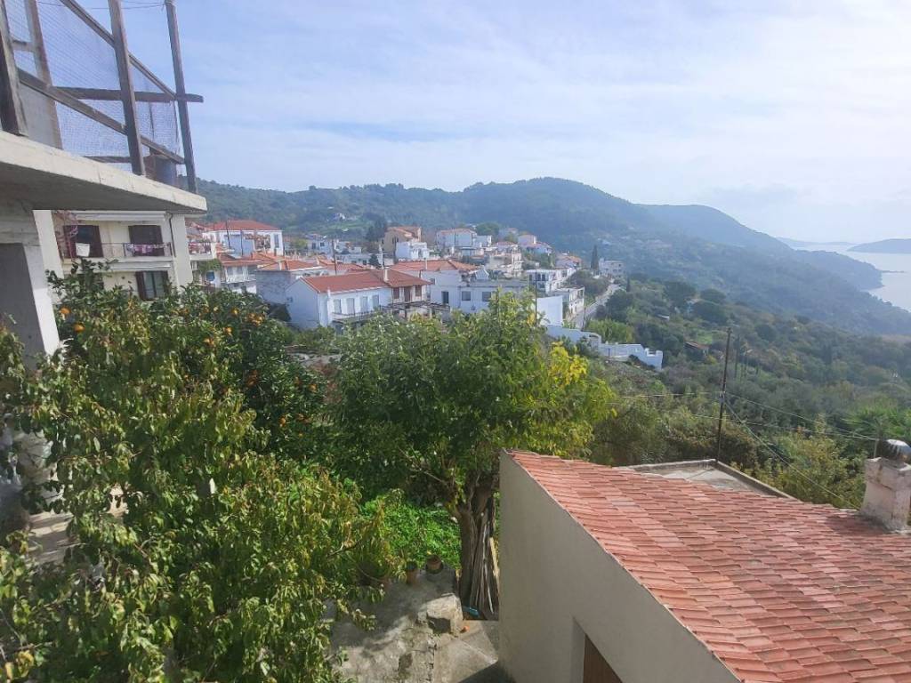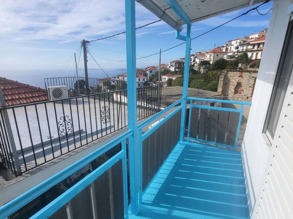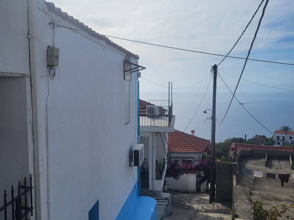 A two-story detached house with a total area of 90.38 sq.m. is available for sale in Glossa, Skopelos. This is a corner stone house, bright and featuring a traditional style. The ground floor consists of a kitchen, a living room, and a bathroom, while the upper floor features an open-plan bedroom area and a veranda. Additionally, there is an underground storage space of approximately 20 sq.m. The property has been recently renovated and features aluminum window frames, a fireplace, and wooden floors, making it move-in ready. It is located in the heart of Glossa at a key location, in a quiet area with easy access and proximity to municipal parking areas. Its position offers unobstructed and unlimited panoramic views of the Aegean Sea. The building sits on a 42.00 sq.m. plot, and the sale also includes a separate 240.00 sq.m. plot located just 15 meters away. The construction quality, the location, and the breathtaking views make it an ideal choice for a permanent or holiday home, as well as an excellent investment for short-term rental platforms.