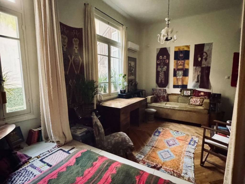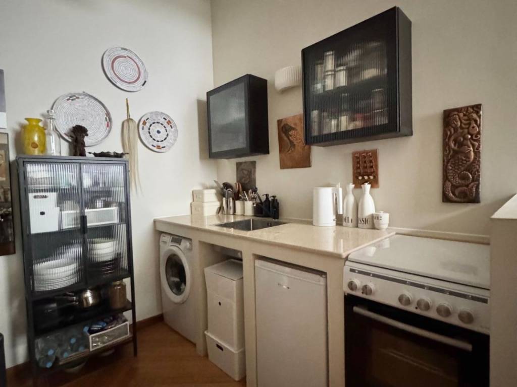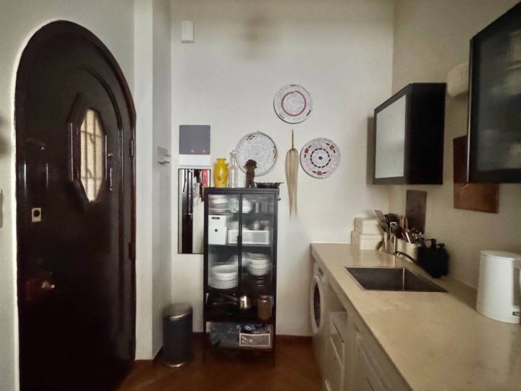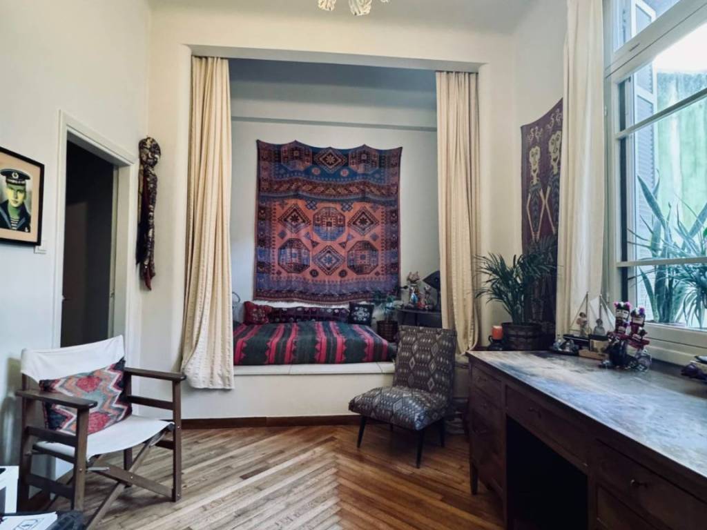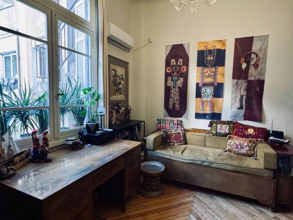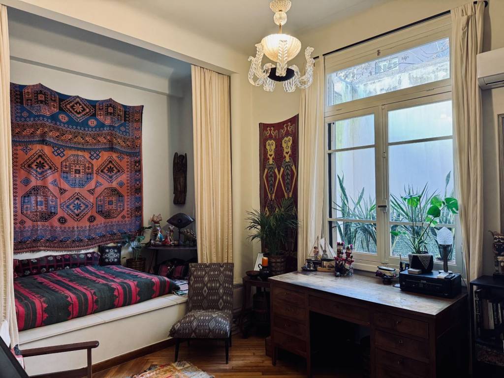 Charming Bohemian Pied-à-Terre in Central Athens Omonia, Agiou Konstiantinos | Ground Floor Flat 36 sqm + 10 sqm Storage in the Cellar | Renovated in 2024 Nestled in a classic Art Deco building (designed by the renowned architect , this 36 sqm flat offers a peaceful escape in the heart of Athens. Located on the ground floor and facing a quiet walled courtyard, it blends original architectural features with modern updates for a cozy and comfortable living space. Key Features: • Original Art Deco Elements: High 3.40m ceilings, polished parquet flooring, and a distinctive wood door that preserve the flat’s timeless charm. • Modern Amenities: A fully equipped kitchen with electric stove, fridge, washing machine, and marble countertops. Air conditioning and Wi-Fi ensure a comfortable environment. • Open & Versatile Layout: The bright main living area includes a raised platform that serves as a bedroom with hidden storage beneath, making the space both functional and spacious. • Practical Bathroom: Featuring a shower and ample space for storage, it covers all the essentials without excess. • Outdoor Potential: The flat has access to a shared courtyard, offering the possibility of adding your own small garden or outdoor seating area. The flat is fully furnished and ready to move in, with furniture available at request if preferred.