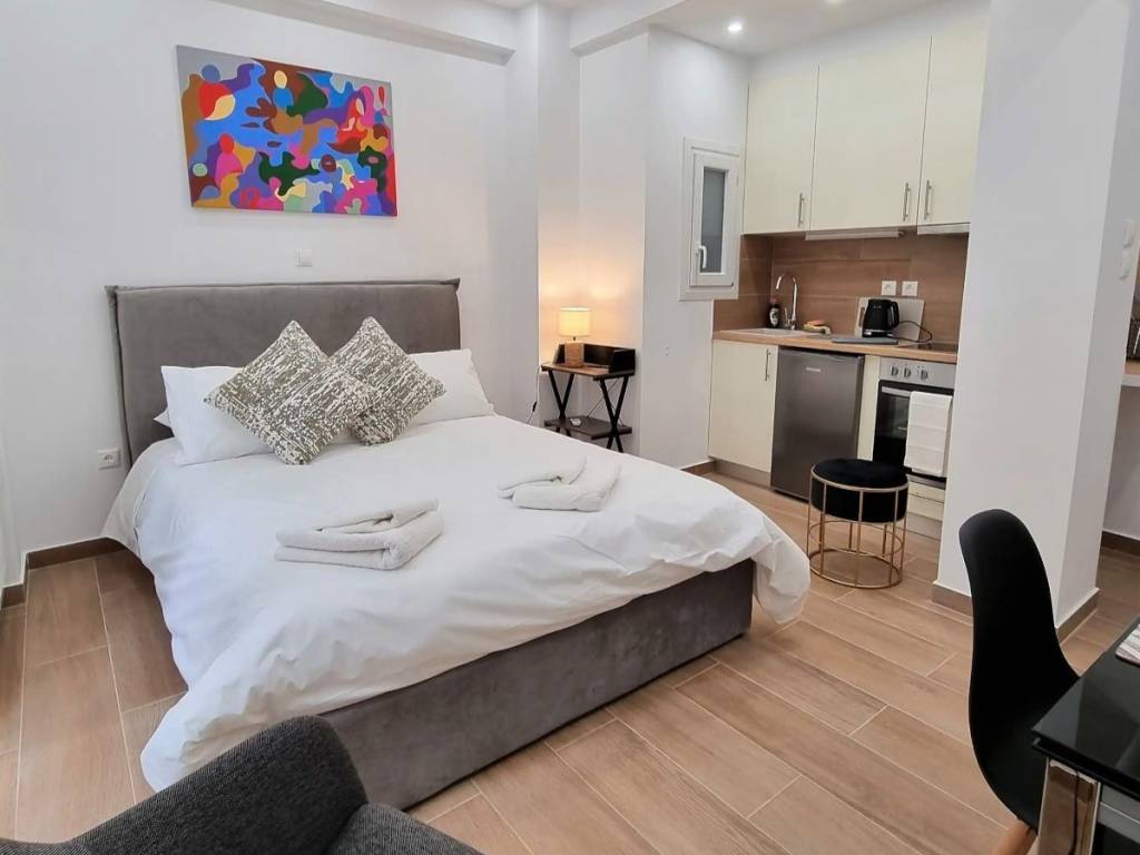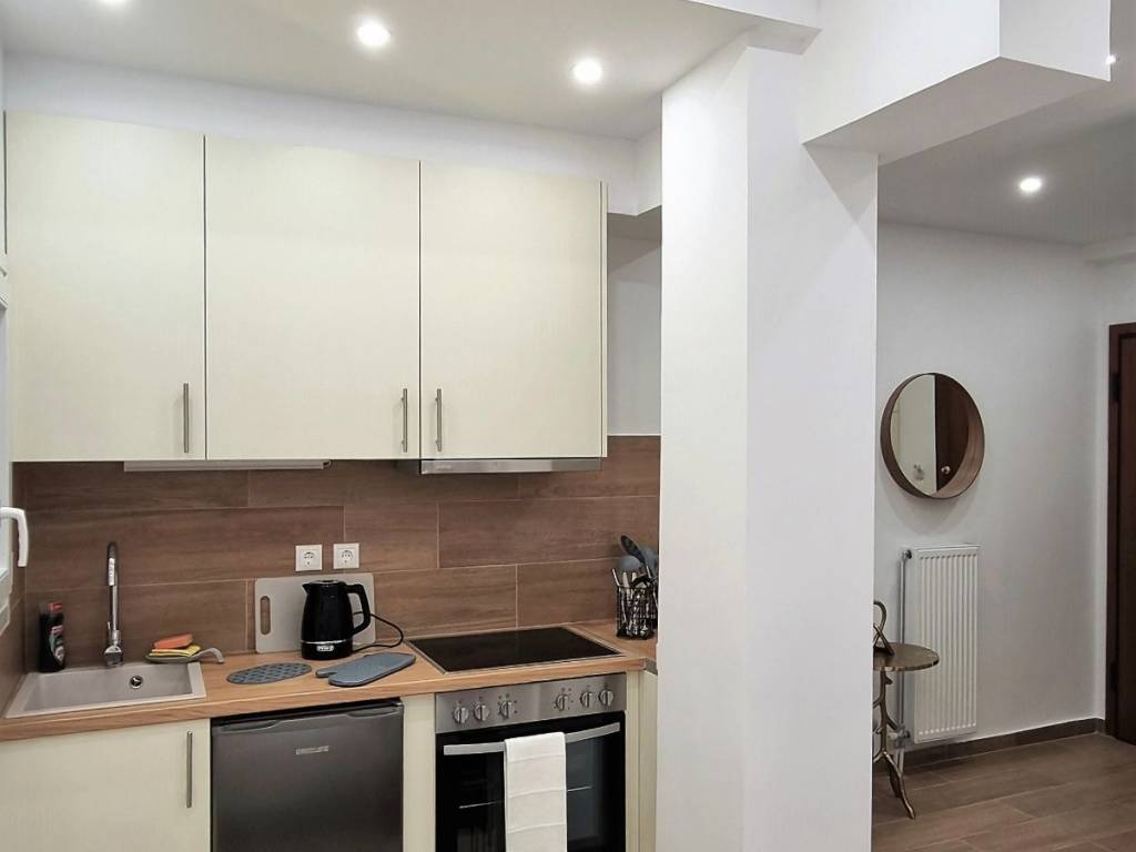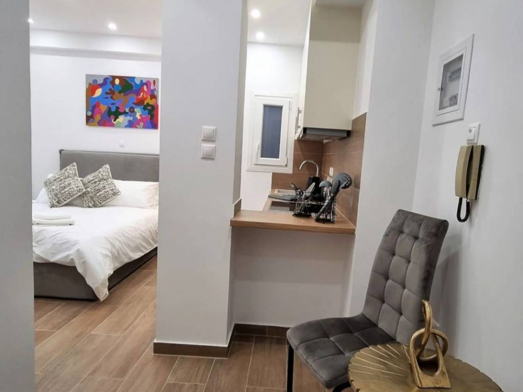 Modern studio apartment in the center of Pangrati, located on a very quiet street, very close to public transport and shops. Fully furnished and completely renovated in 2024. Situated on a mezzanine level, it features a small balcony overlooking a quiet inner courtyard between apartment buildings. The property has a license and registration number for Airbnb rental. It has been successfully used for short-term rental on Airbnb, with high demand.