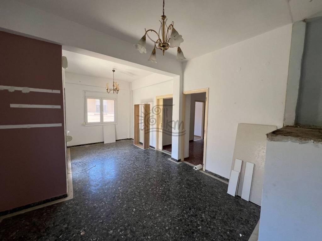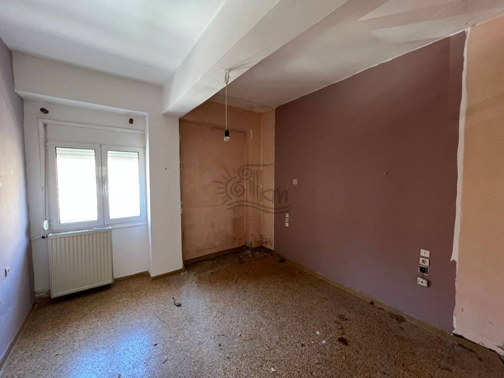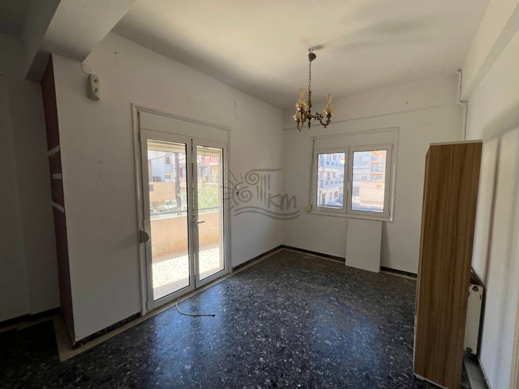 Heraklion, Kaminia. For sale is a three-room corner apartment with a total area of 110 sq m on the first floor. Specifically, it offers a comfortable living room with fireplace, kitchen, two bedrooms, a spacious bathroom, as well as aluminum windows. The property needs renovation, allowing you to configure it according to your personal needs and aesthetics. It is an ideal choice for both owner-occupation and investment development, in a quiet area with easy access to the city center.