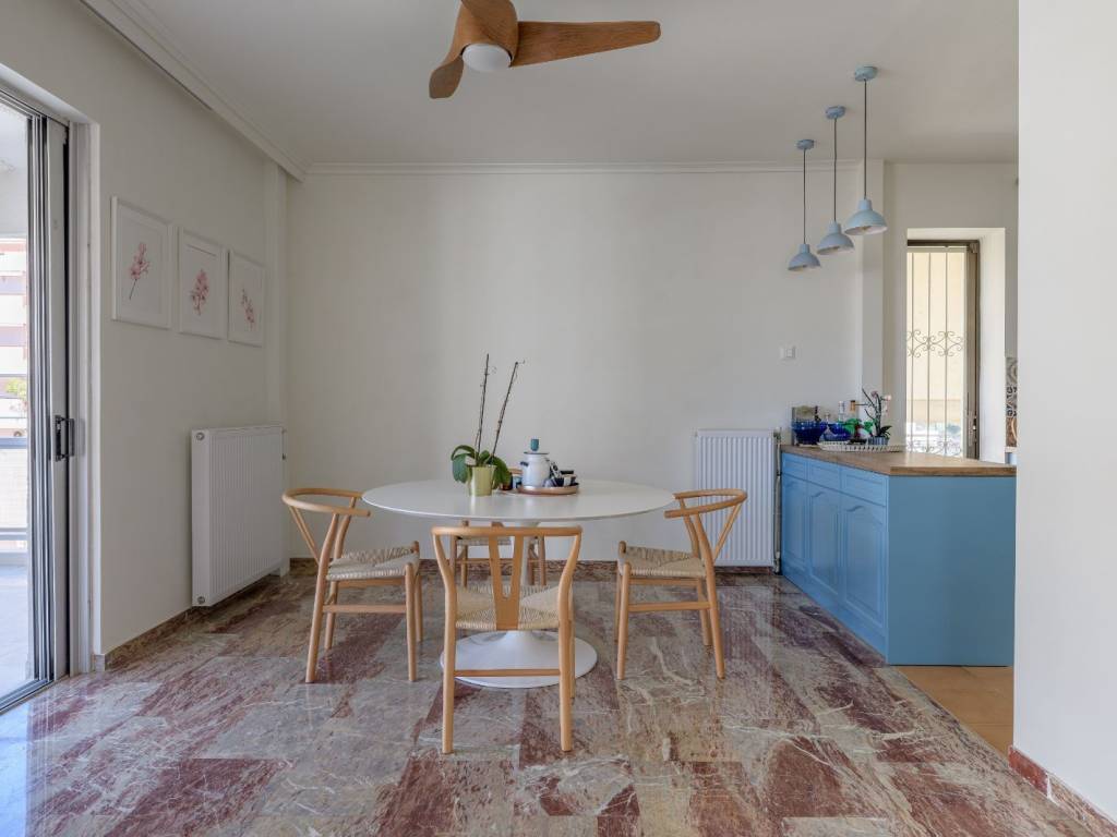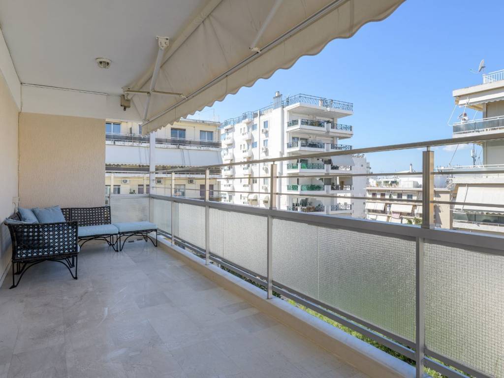 A beautiful apartment, ideally located in a quiet area, close to the sea, in Palaio Faliro. Situated on the 6th floor, the apartment occupies 171sq.m. and it has been recently renovated. It features a large, bright living room and a dining area with marble floors and large openings, a very neat kitchen with a daily dining area, 1 study room, 1 master bedroom with its bathroom, 2 more bedrooms and 1 additional bathroom. The apartment offers large verandas with electric awnings in all quarters, while there is a laundry and a storage room at the basement. A remarkable property, in one of the most beautiful suburbs of the south Αthens, in Palaio Faliro.