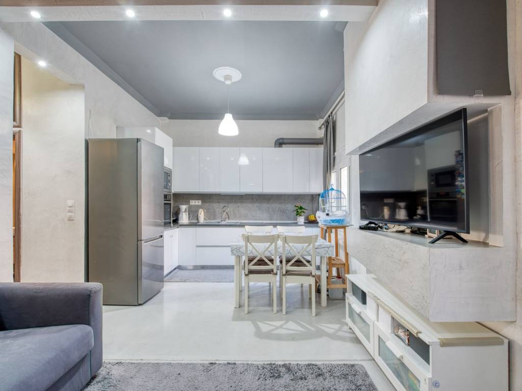 Located in a quiet, family-friendly neighborhood of Polichni, with immediate access to shops, schools, daycare centers, the ring road, and main roads, this beautiful fully renovated 77 sq.m. apartment is available for sale and ready to welcome its new owners. Property Features: 2 large and comfortable bedrooms Spacious open-plan living room & kitchen Modern bathroom Bright balcony with sliding security railings The layout is practical and well-proportioned, offering generous, square-shaped spaces filled with natural light—perfect for comfortable everyday living. Full Renovation The apartment was fully renovated 10 years ago, including: New plumbing and electrical installations New window frames New kitchen installation Sliding security railings on windows and balcony door Security entrance door Autonomous oil heating system Pre-installed alarm system wiring throughout the apartment Aesthetics & Quality Walls finished with elegant stucco veneziano technique Bathroom and flooring finished with polished cement (microcement) Modern, neutral kitchen design suitable for all tastes Storage Spaces 2 sq.m. storage room next to the apartment Additional large 8 sq.m. storage room in the basement Additional Advantages Easy parking available in the area at all hours Quiet and peaceful neighborhood Bright and well-maintained property A move-in-ready, high-quality home that requires no further investment is waiting for you. Ideal for families, couples, or as an investment opportunity.